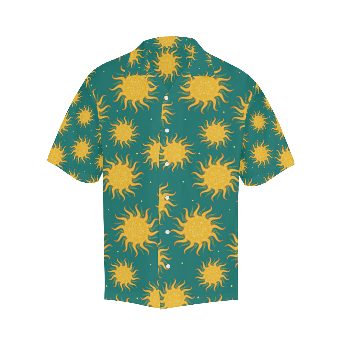 Sun green background Men's All Over Print Hawaiian Shirt is a uniqued design and limited item. It made to order, hand printed, and sewn with love in our factory.