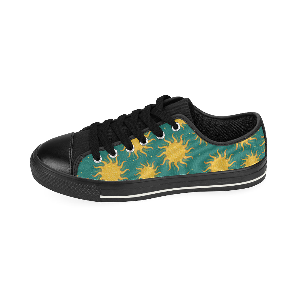 Sun green background Men's Low Top Canvas Shoes Black