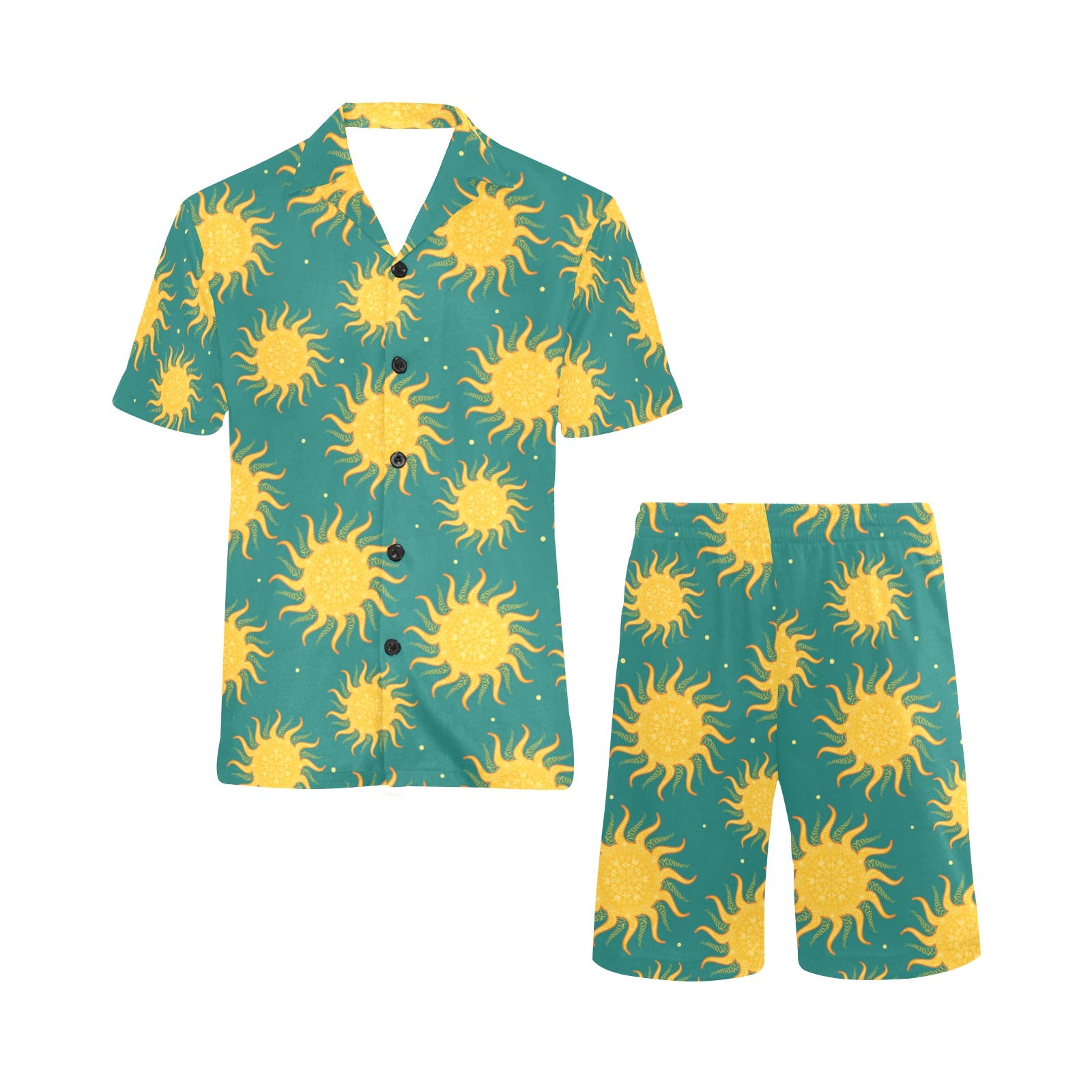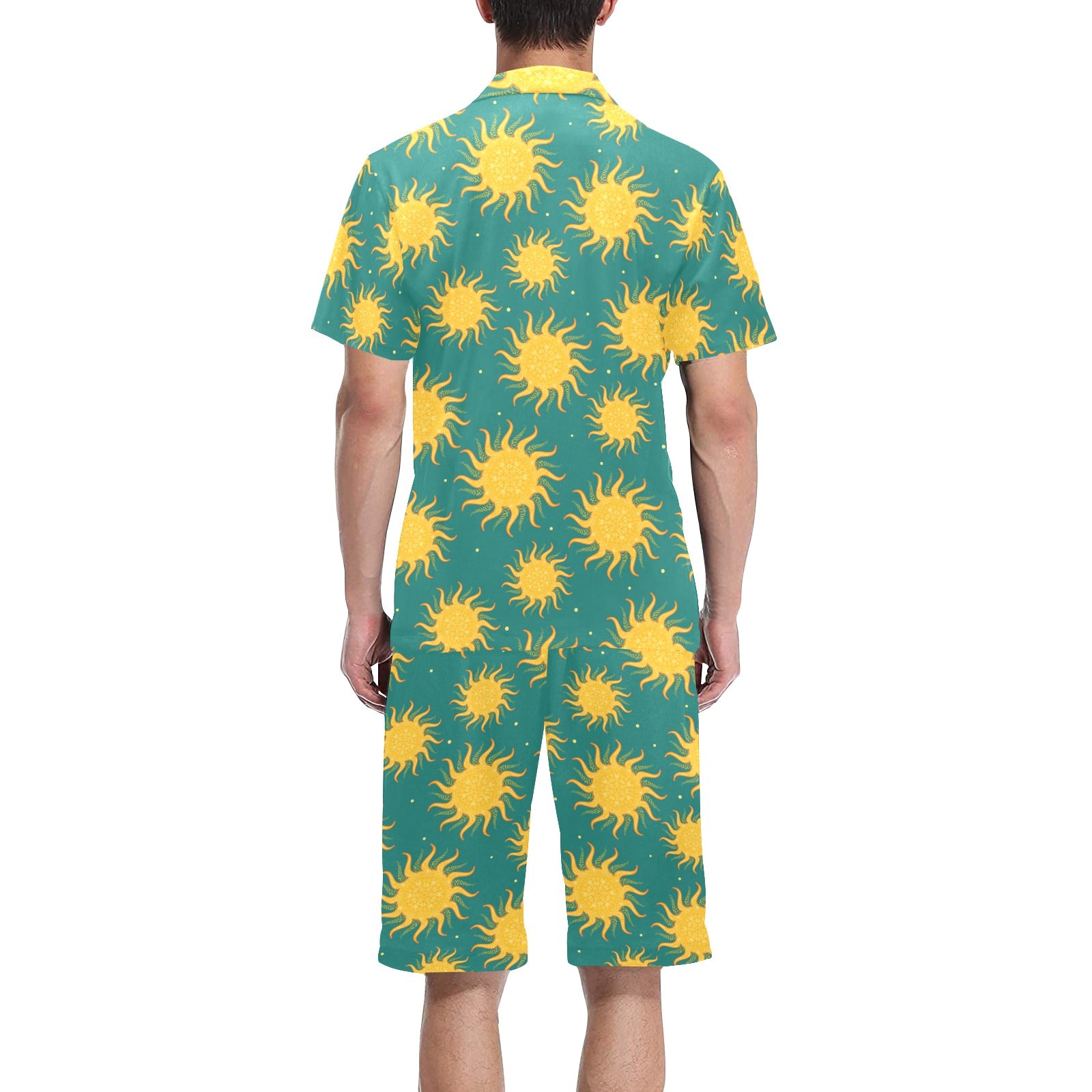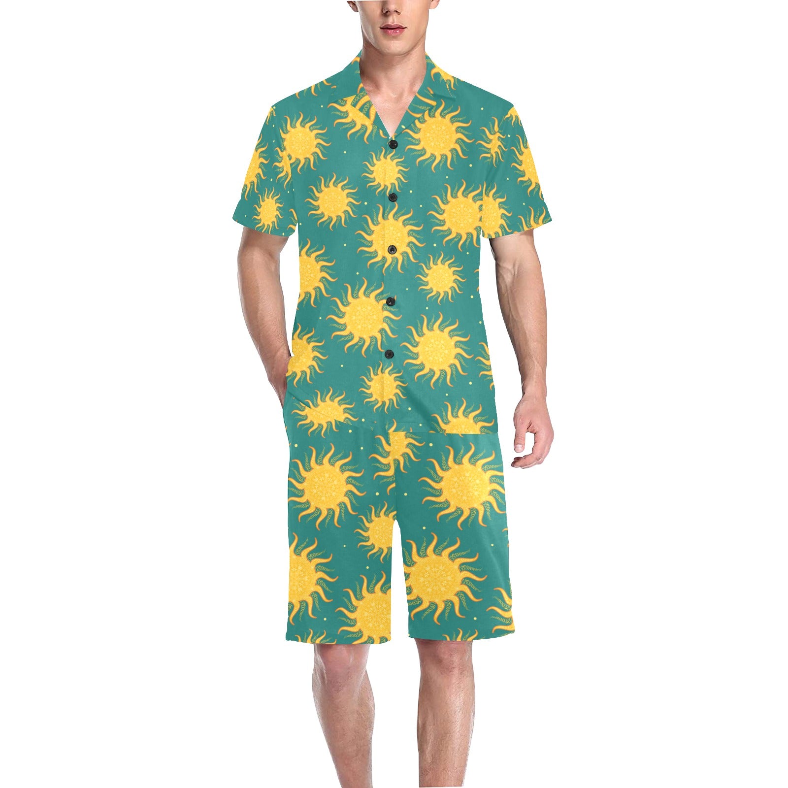 Sun green background Men's V-Neck Short Pajama Set