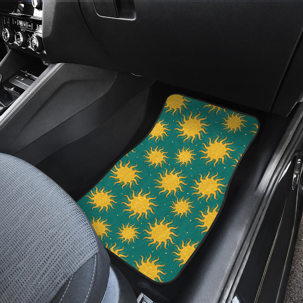 Sun green background Front Car Mats are uniqued design and limited item. It made to order, hand printed, and sewn with love in our factory.
