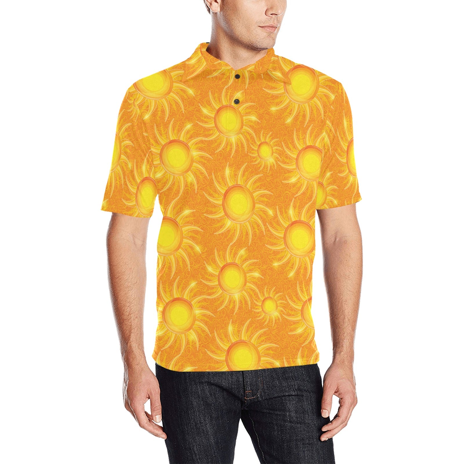 Sun orange background Men's All Over Print Polo Shirt