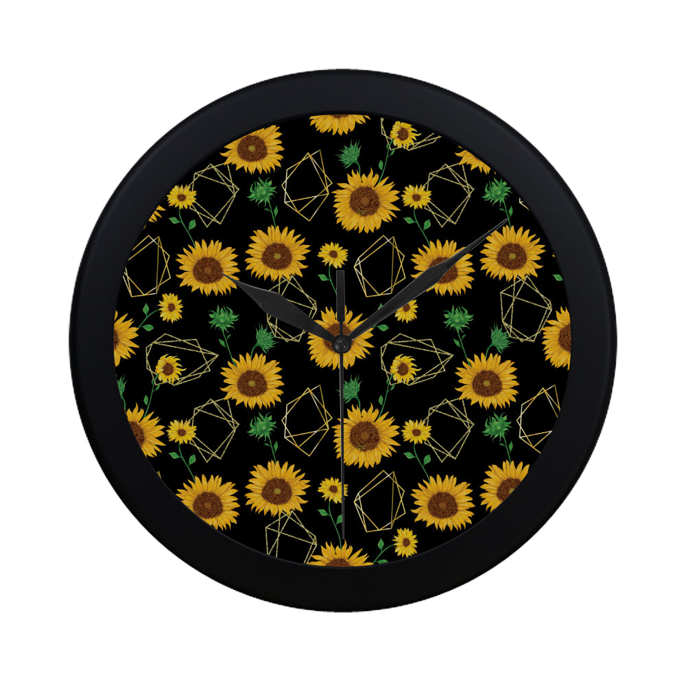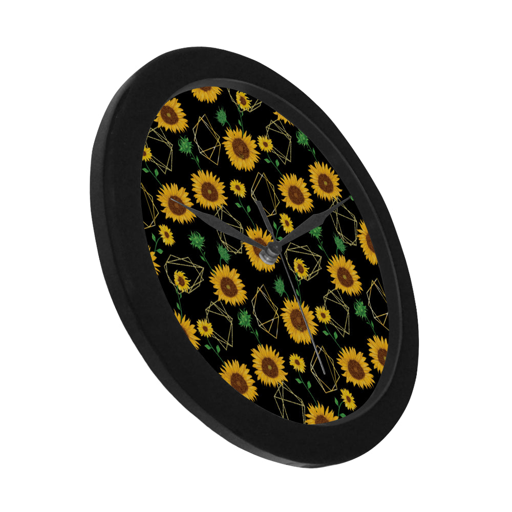 sunflower golden polygonal shapes Elegant Black Wall Clock