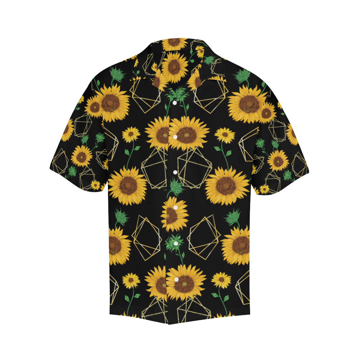 sunflower golden polygonal shapes Men's All Over Print Hawaiian Shirt is a uniqued design and limited item. It made to order, hand printed, and sewn with love in our factory.
