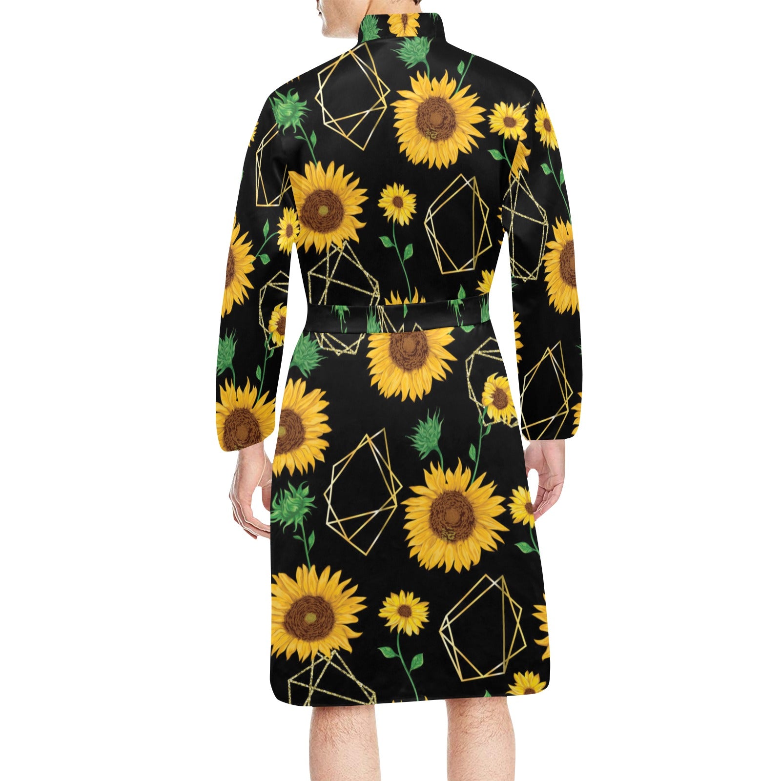 sunflower golden polygonal shapes Men's Long Sleeve Belted Night Robe