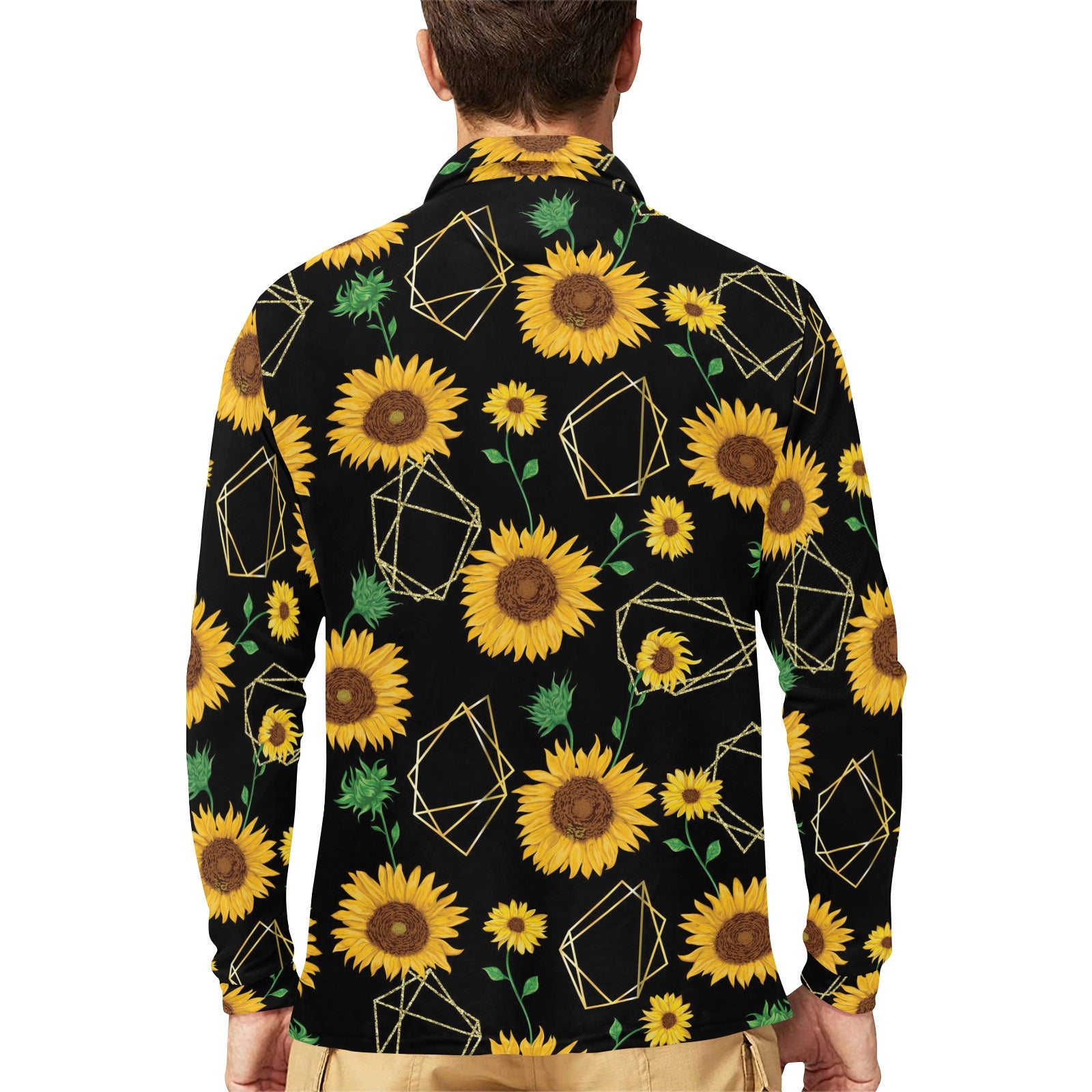 sunflower golden polygonal shapes Men's Long Sleeve Polo Shirt
