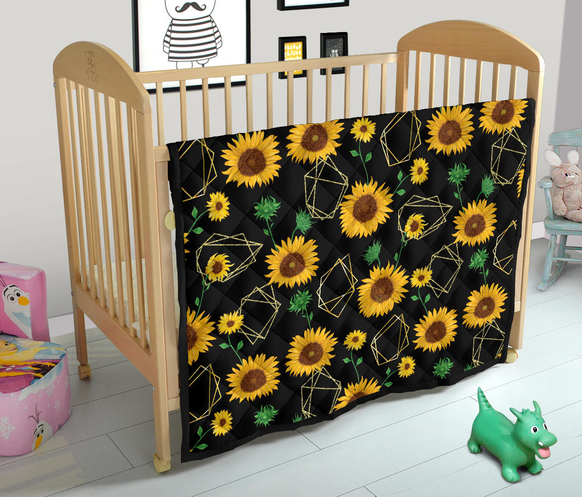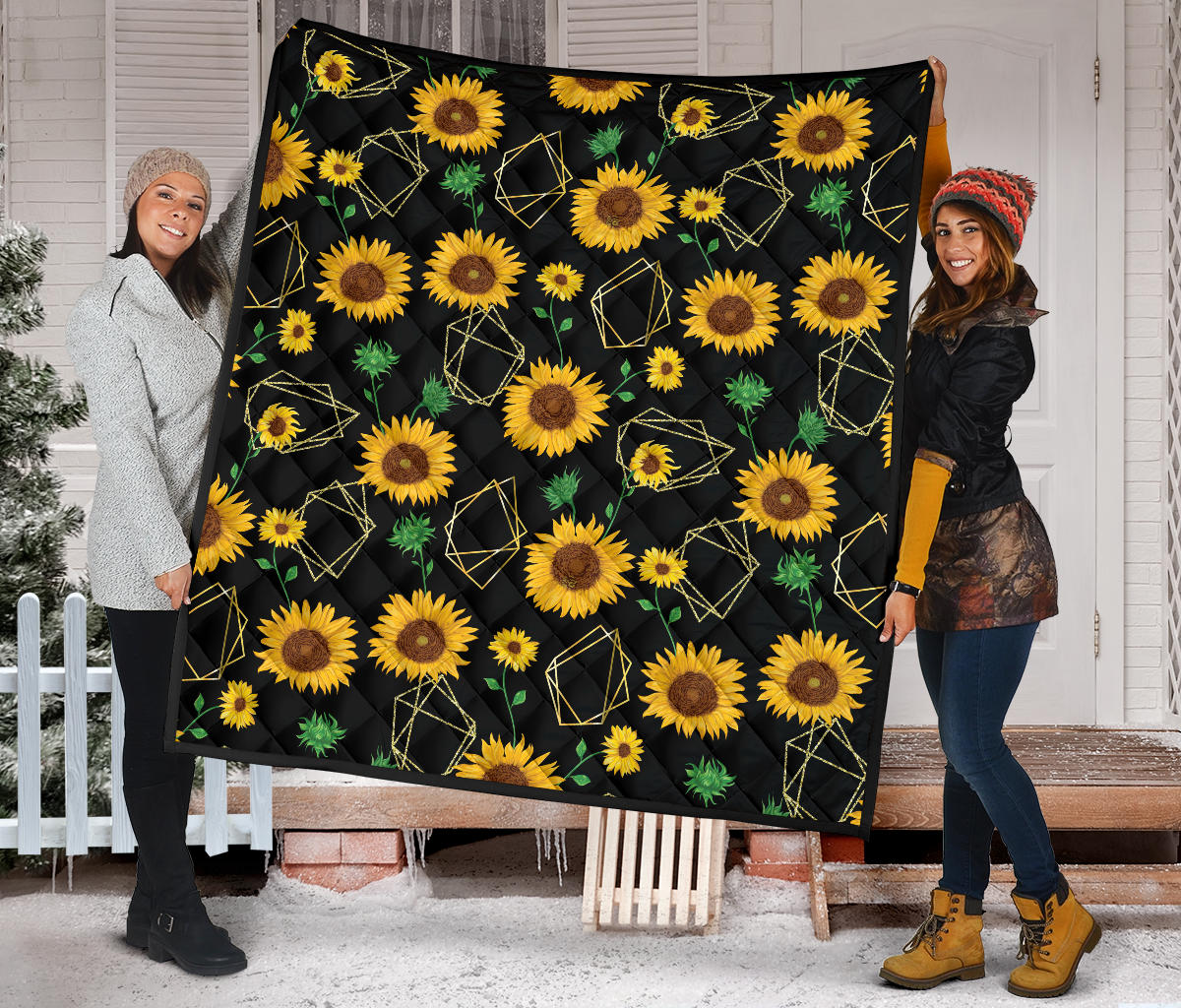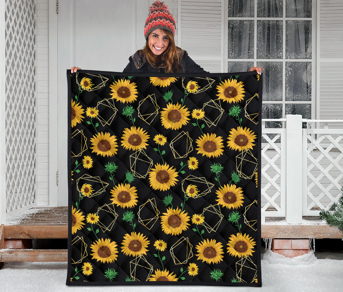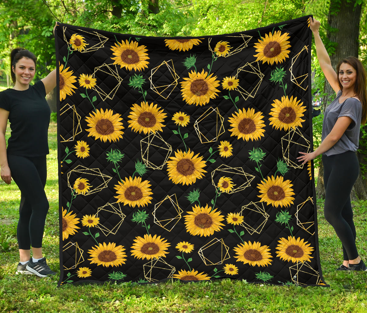 Sunflower Golden Polygonal Shapes Premium Quilt is a uniqued design and limited item. It made to order, hand printed, and sewn with love in our factory.
