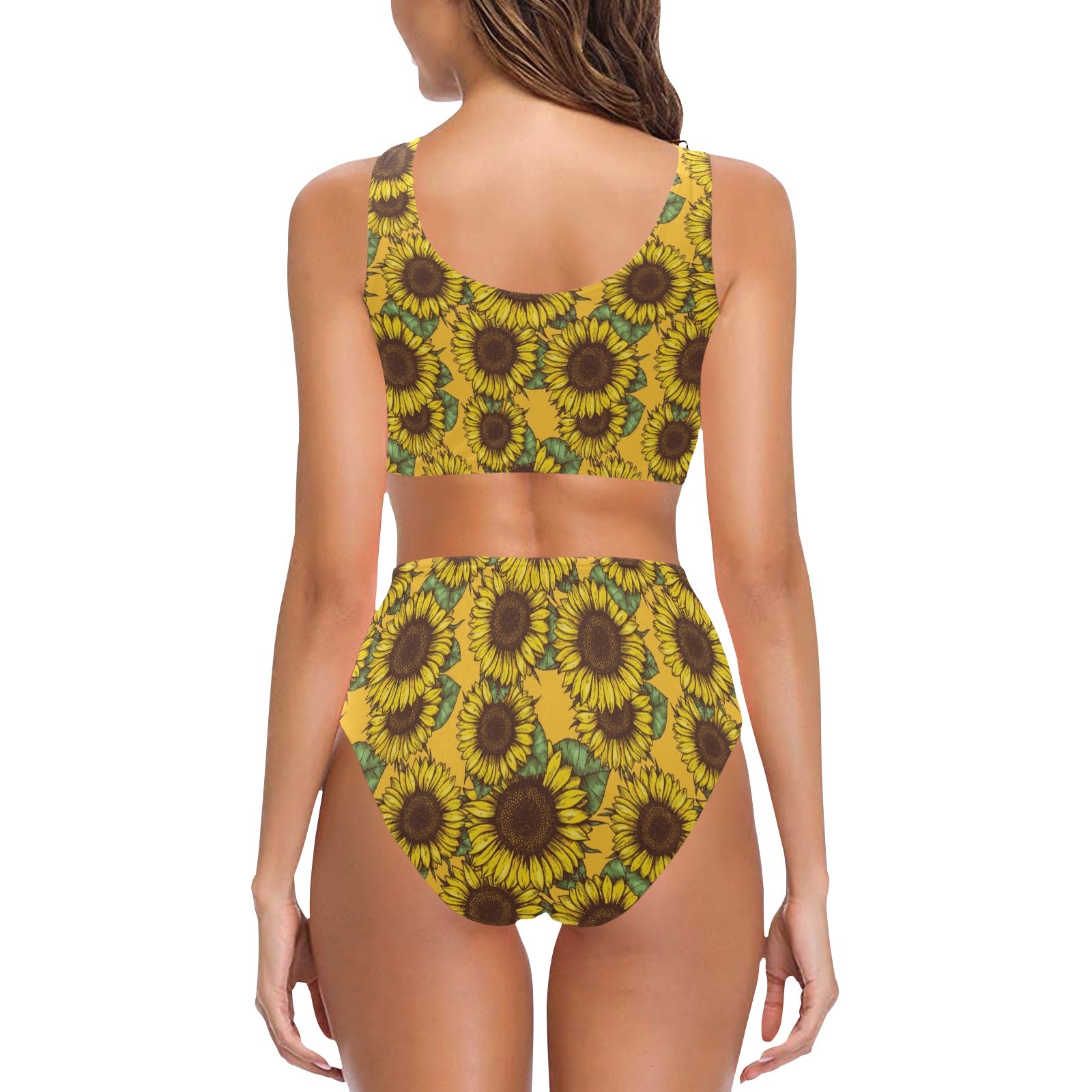 Sunflower pattern Chest Bowknot High Waisted Bikini Swimsuit