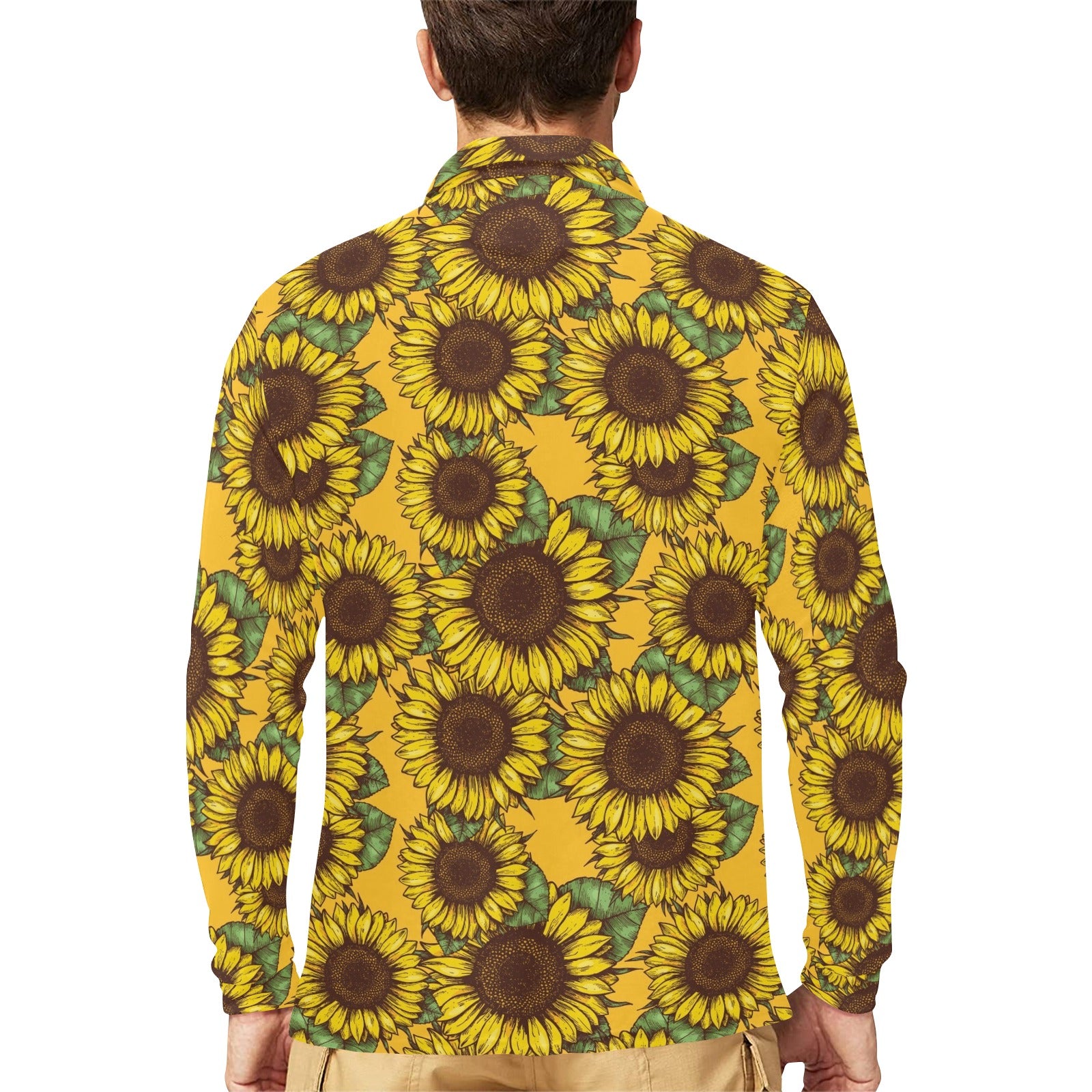 Sunflower pattern Men's Long Sleeve Polo Shirt