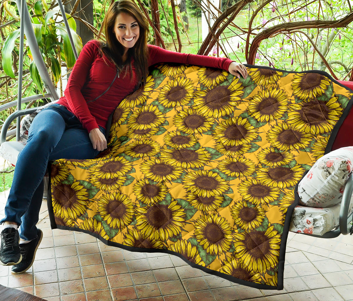 Sunflower Pattern Premium Quilt is a uniqued design and limited item. It made to order, hand printed, and sewn with love in our factory.