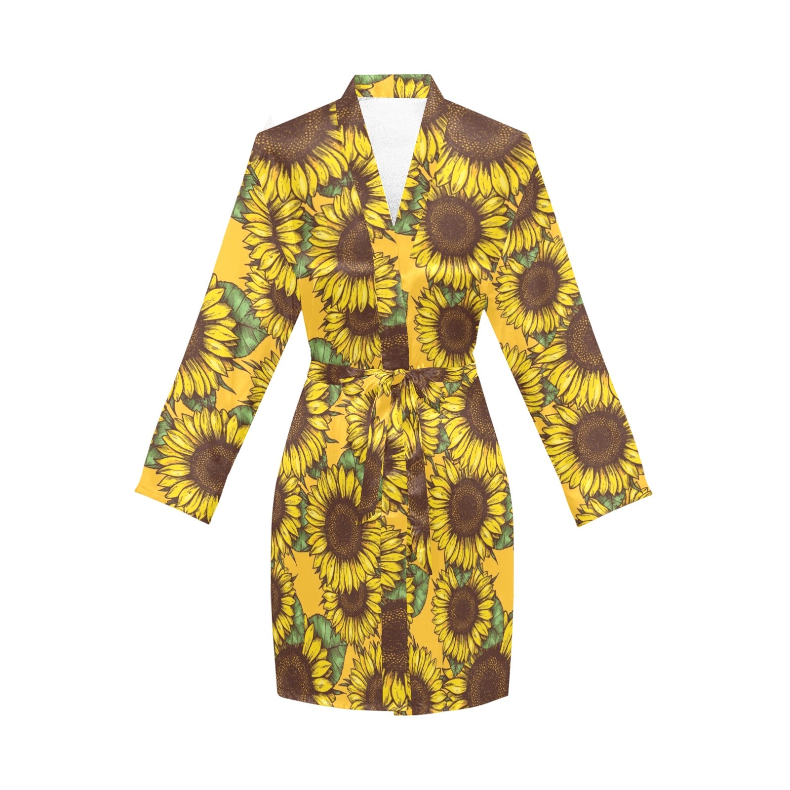 Sunflower pattern Women's Long Sleeve Belted Night Robe