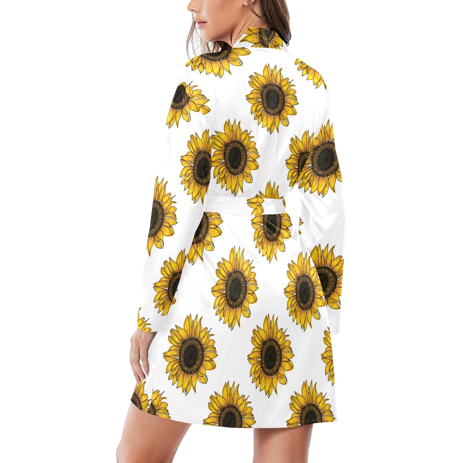 sunflowers design pattern Women's Long Sleeve Belted Night Robe