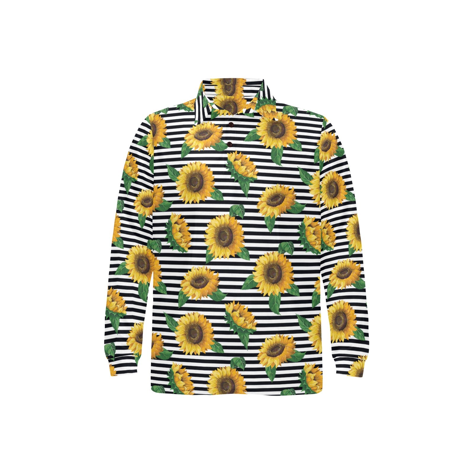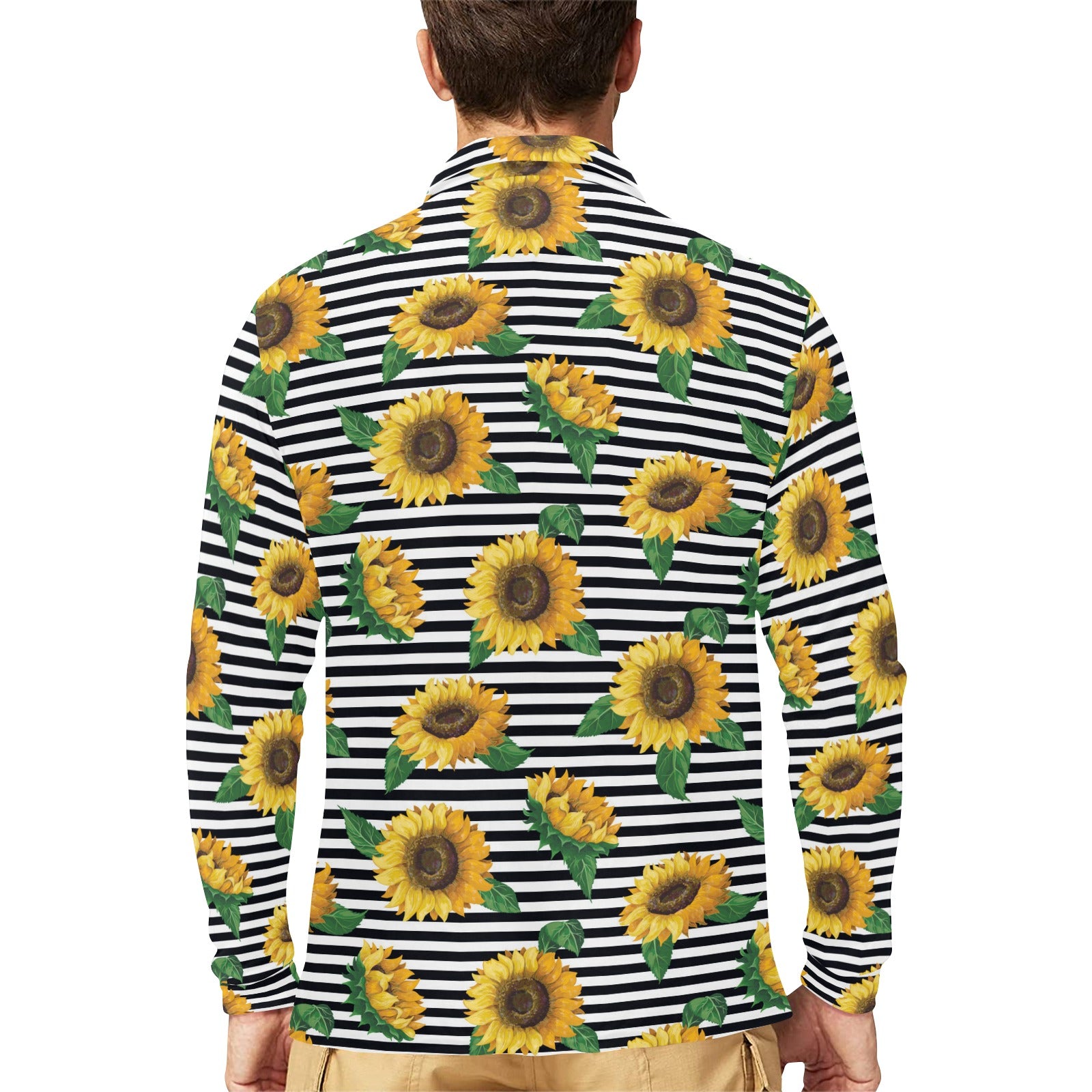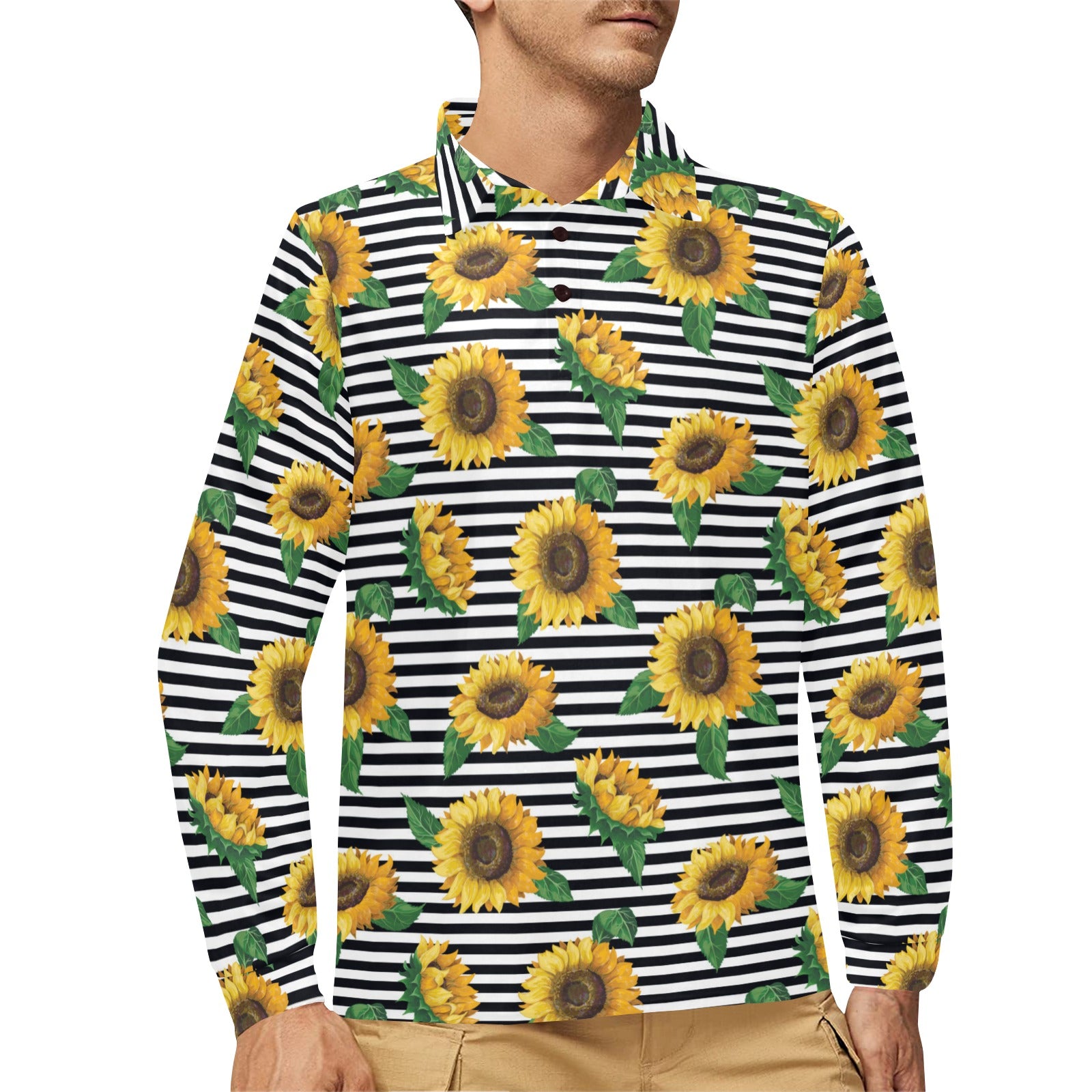 sunflowers ribbon background Men's Long Sleeve Polo Shirt