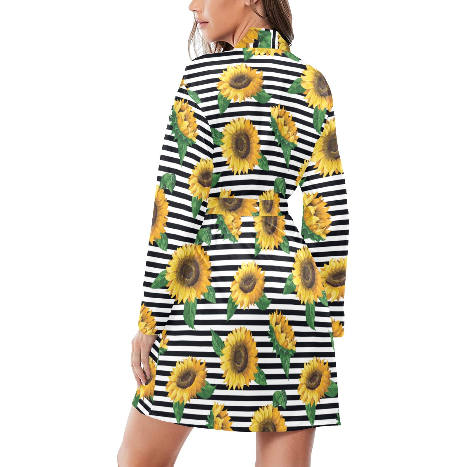 sunflowers ribbon background Women's Long Sleeve Belted Night Robe