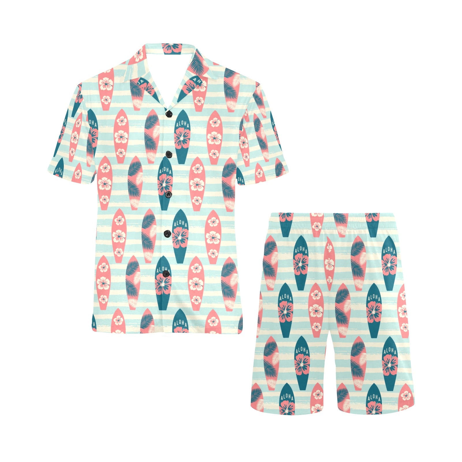 Surfboard Pattern Print Design 02 Men's V-Neck Short Pajama Set
