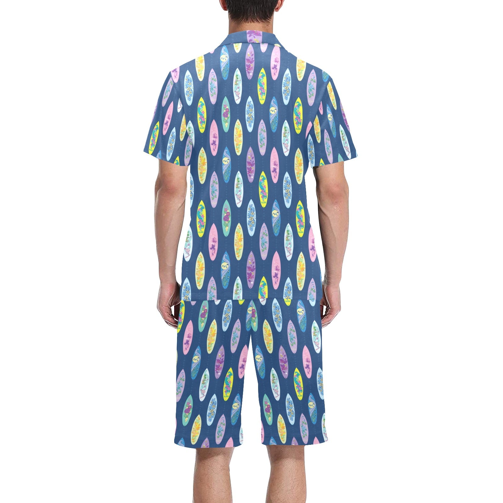 Surfboard Pattern Print Design 03 Men's V-Neck Short Pajama Set