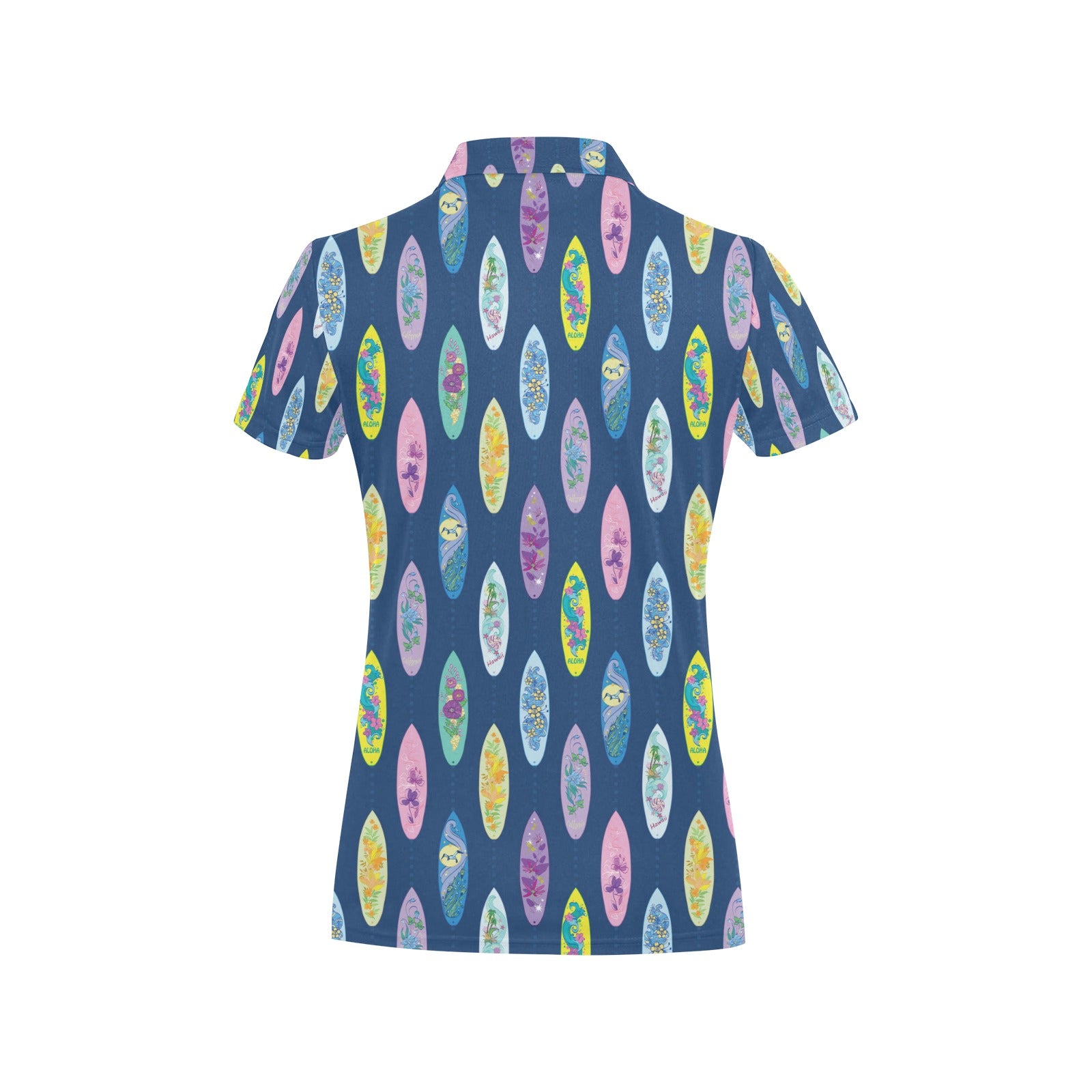 Surfboard Pattern Print Design 03 Women's All Over Print Polo Shirt