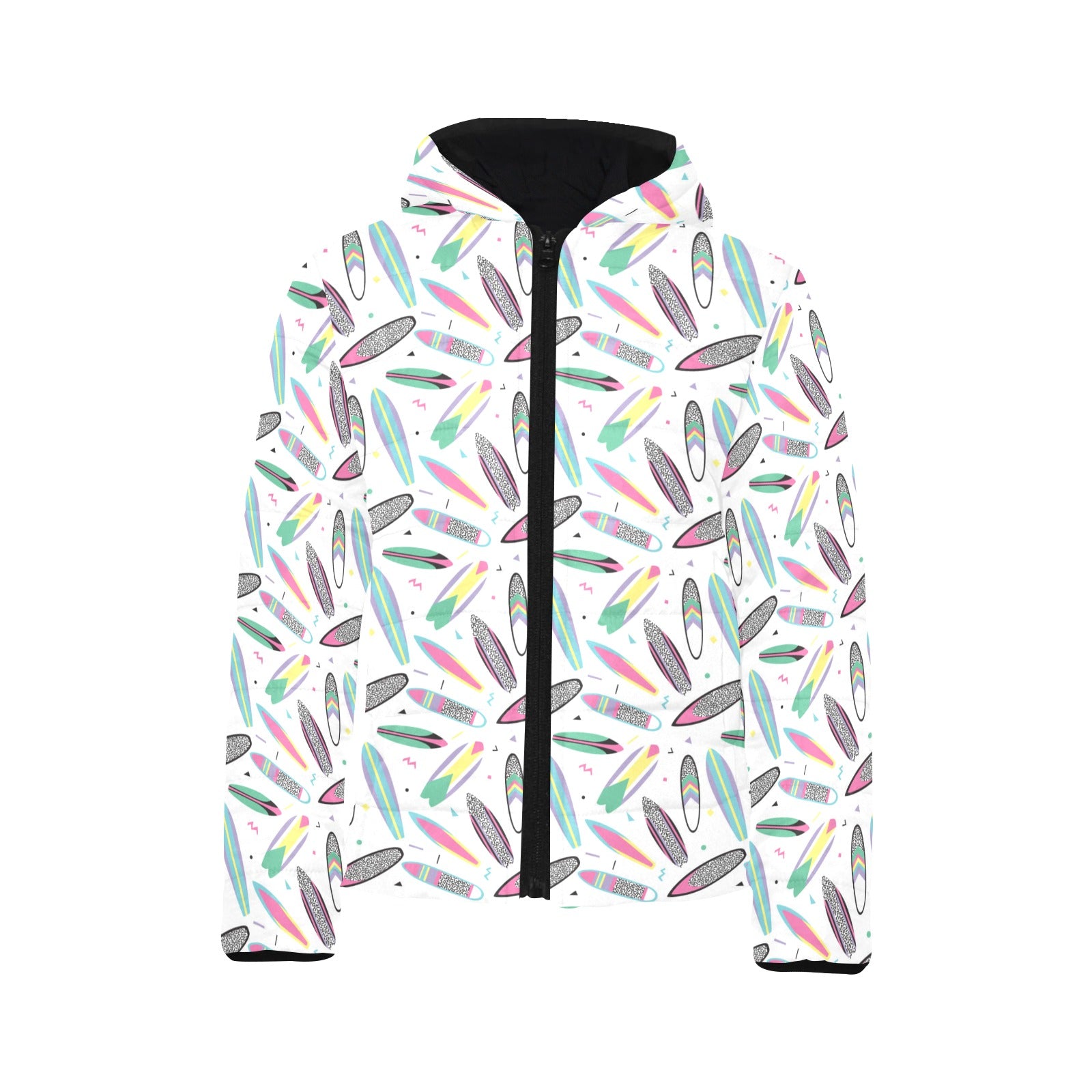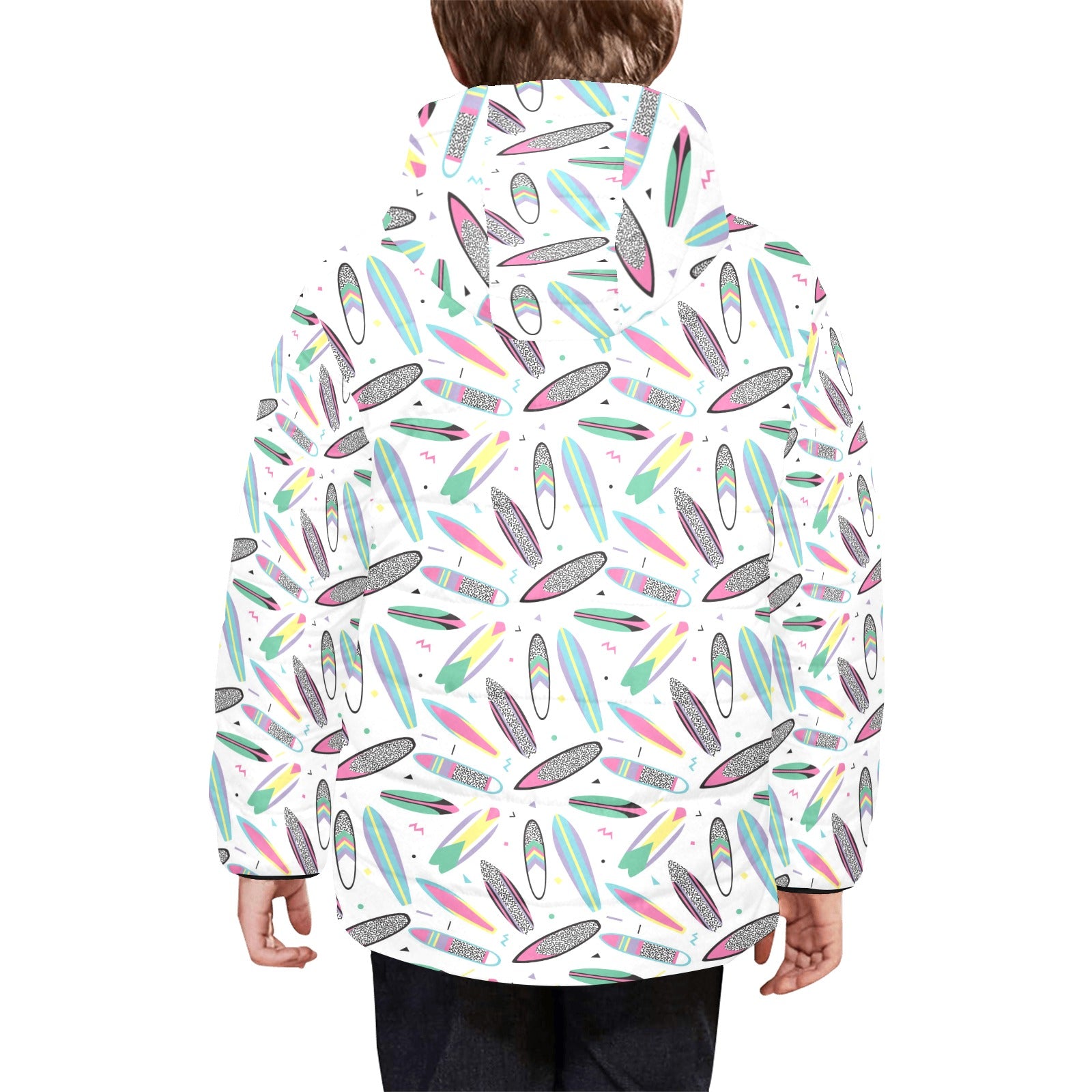 Surfboard Pattern Print Design 04 Kids' Boys' Girls' Padded Hooded Jacket