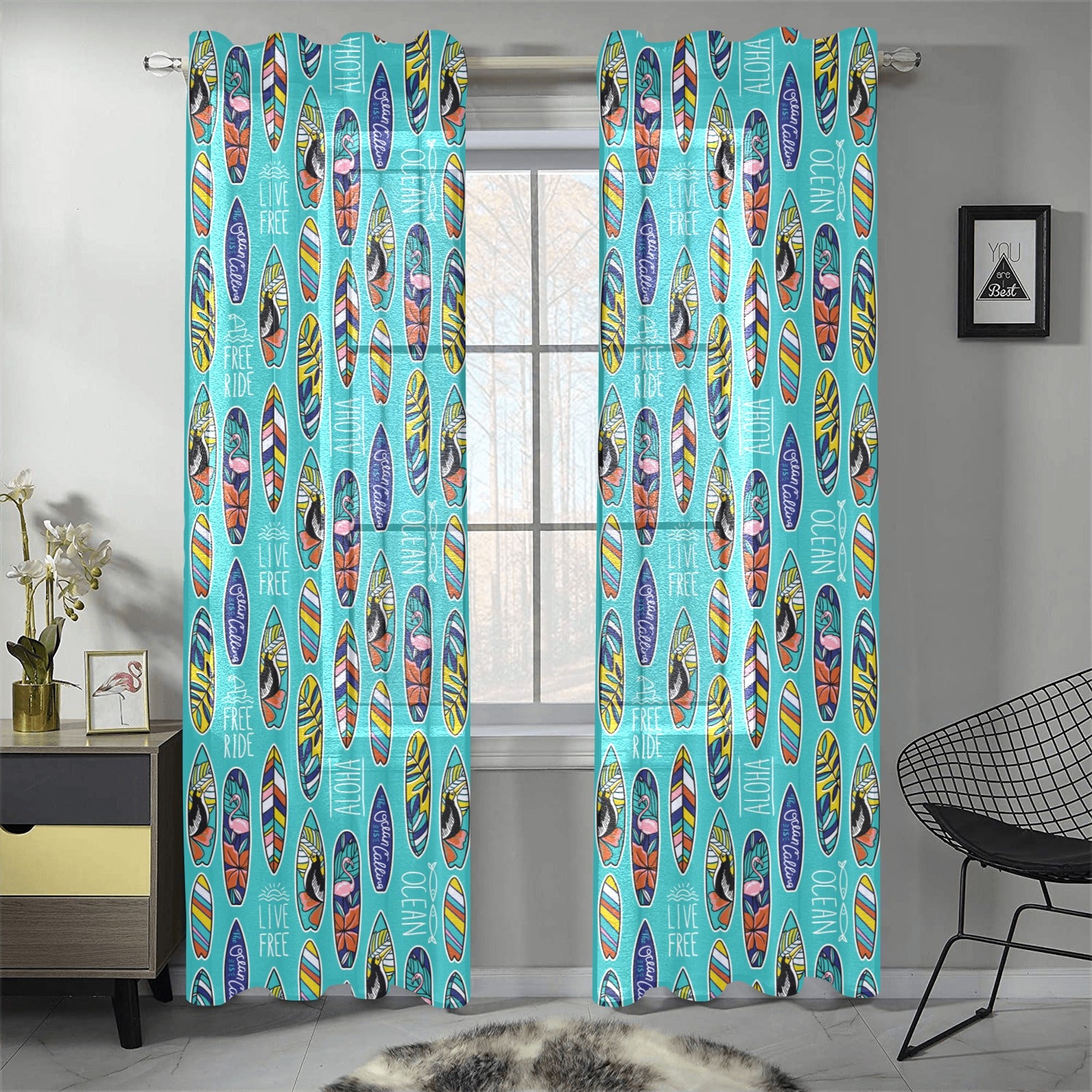 Surfboard Pattern Print Design 05 Gauze Curtain