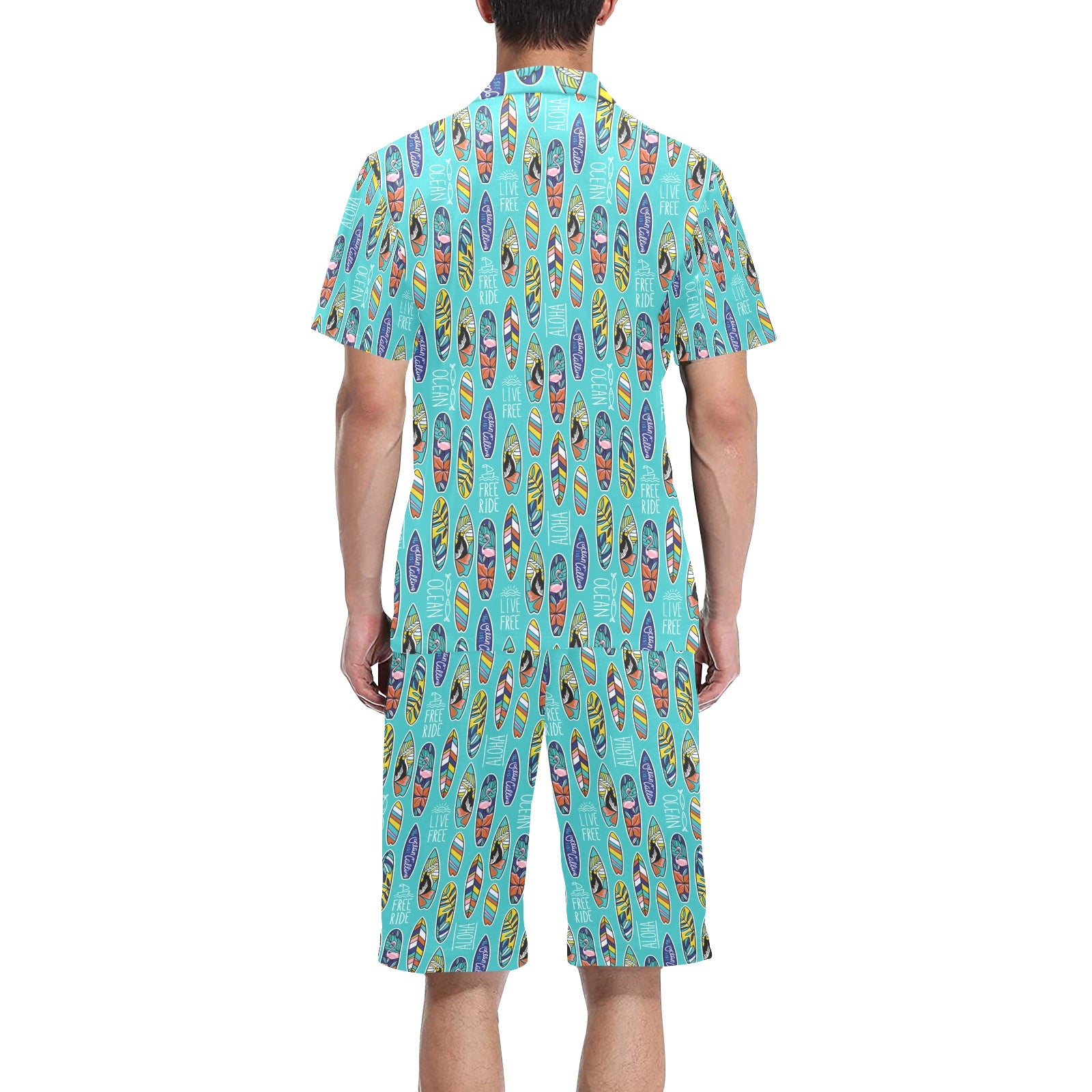 Surfboard Pattern Print Design 05 Men's V-Neck Short Pajama Set