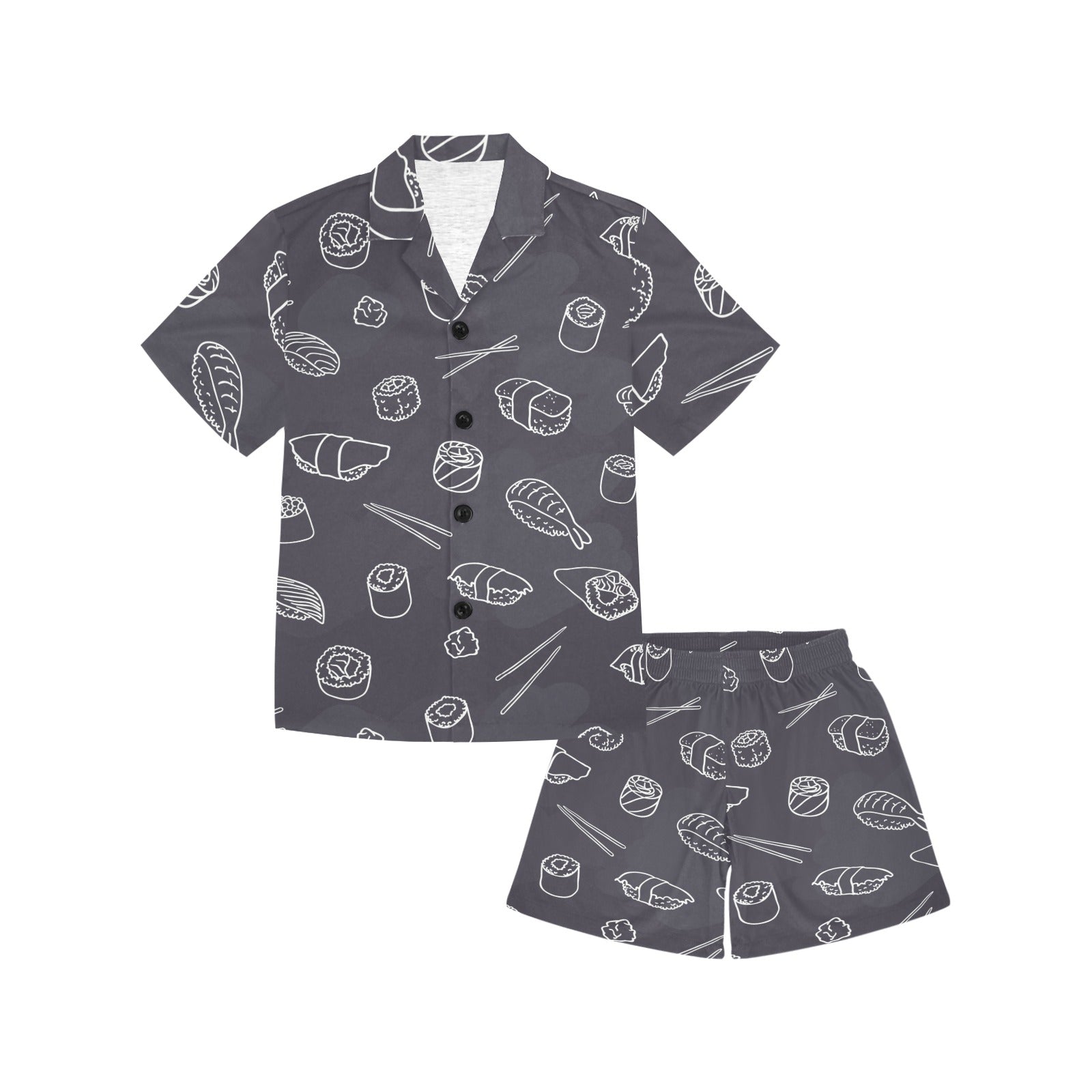 sushi pattern black background Kids' Boys' Girls' V-Neck Short Pajama Set