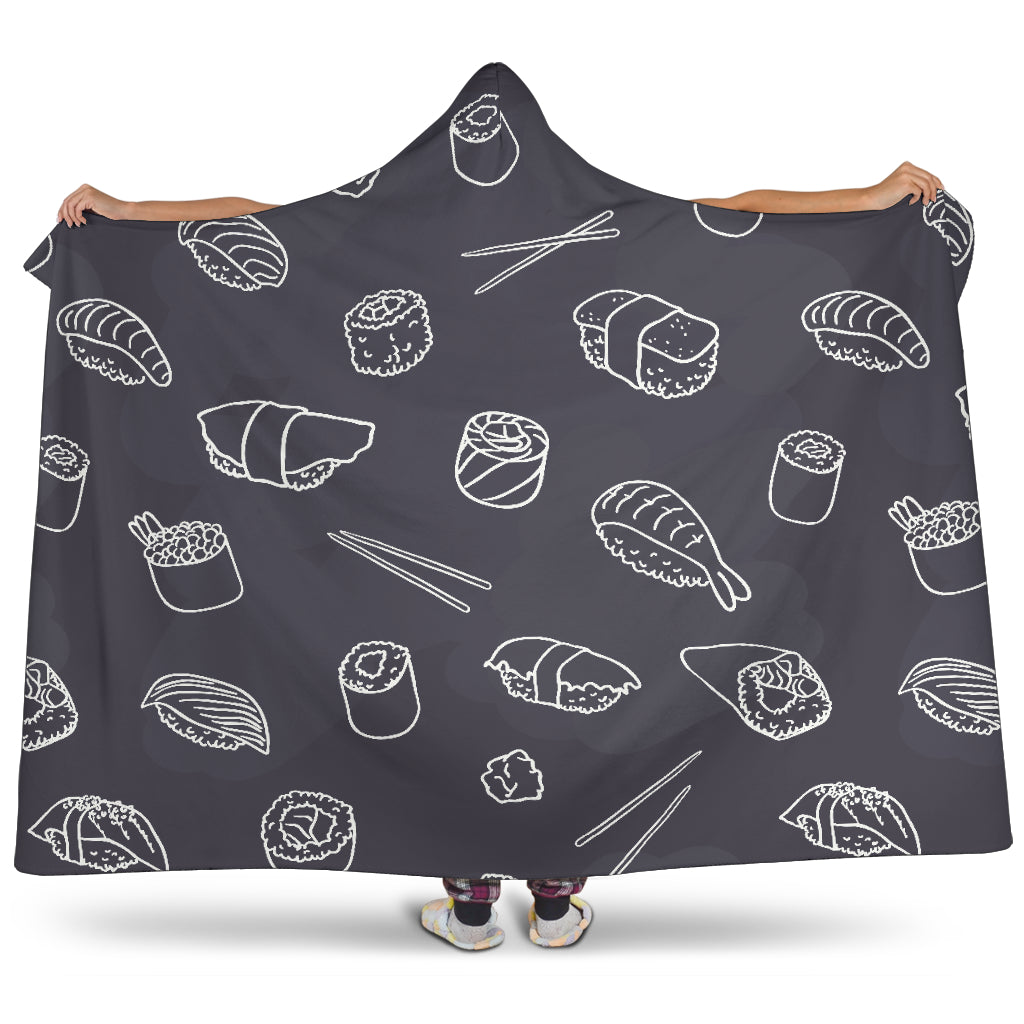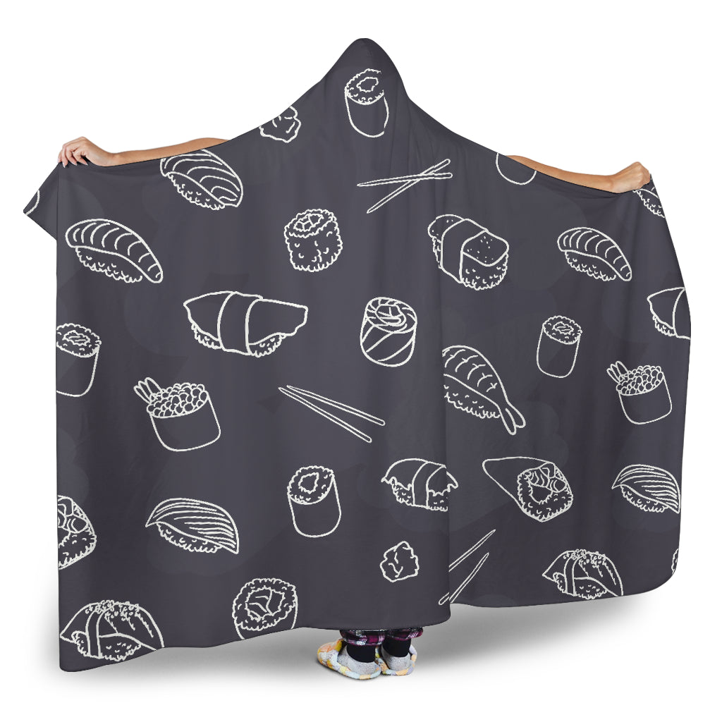 sushi pattern black background Hooded Blanket are custom-made-to-order and handcrafted to the highest quality standards.