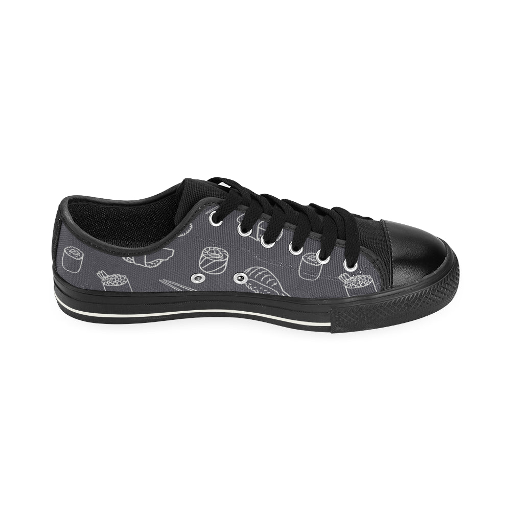 sushi pattern black background Men's Low Top Canvas Shoes Black