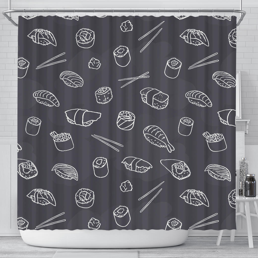 Sushi Pattern Black Background Shower Curtain Fulfilled In US