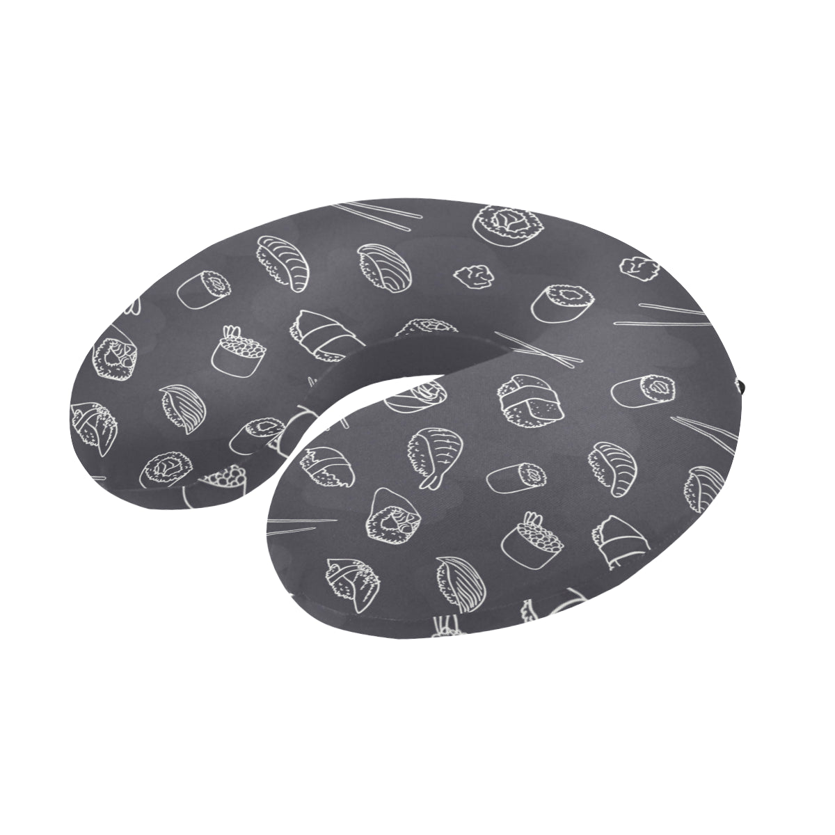 sushi pattern black background U-Shaped Travel Neck Pillow