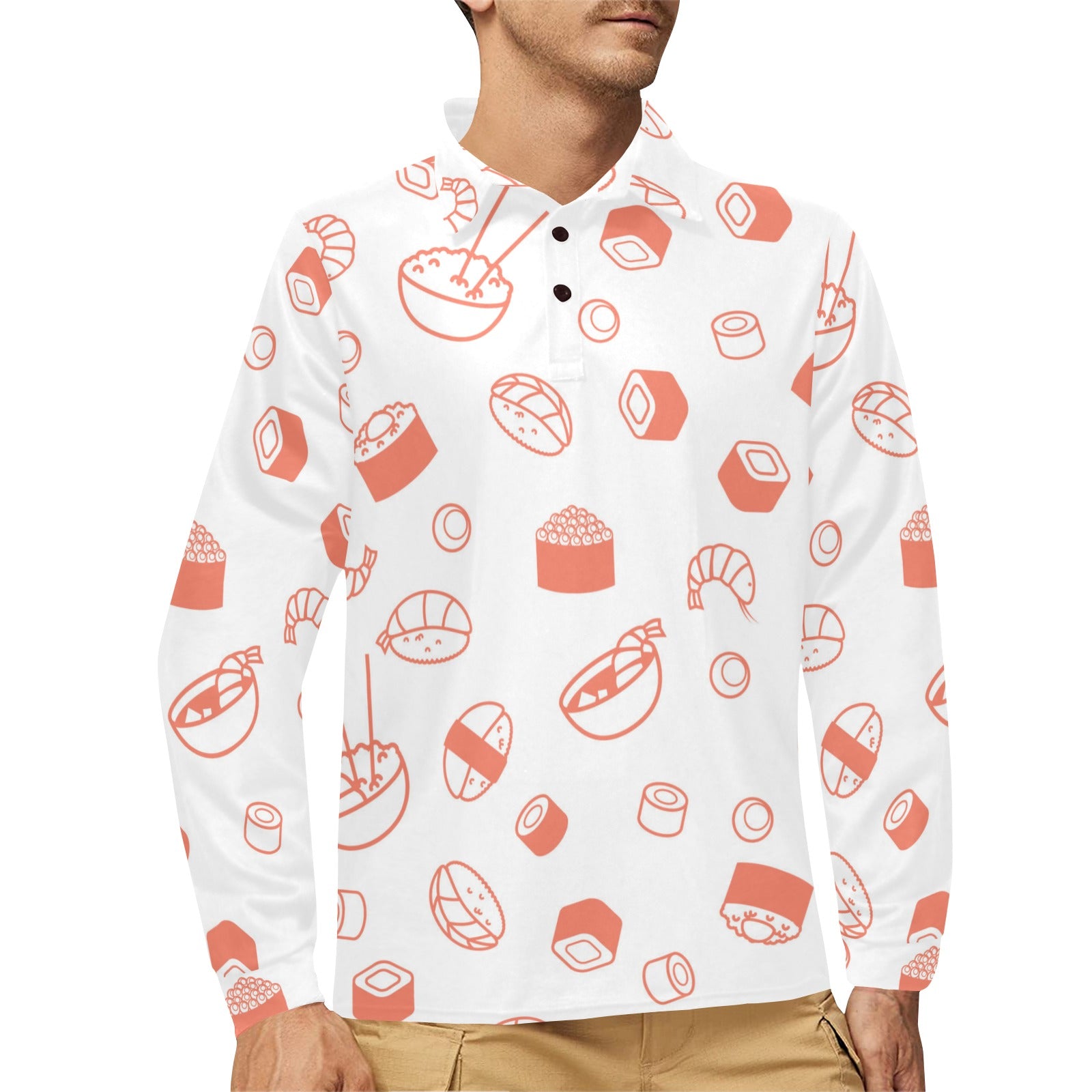 Sushi pattern Men's Long Sleeve Polo Shirt