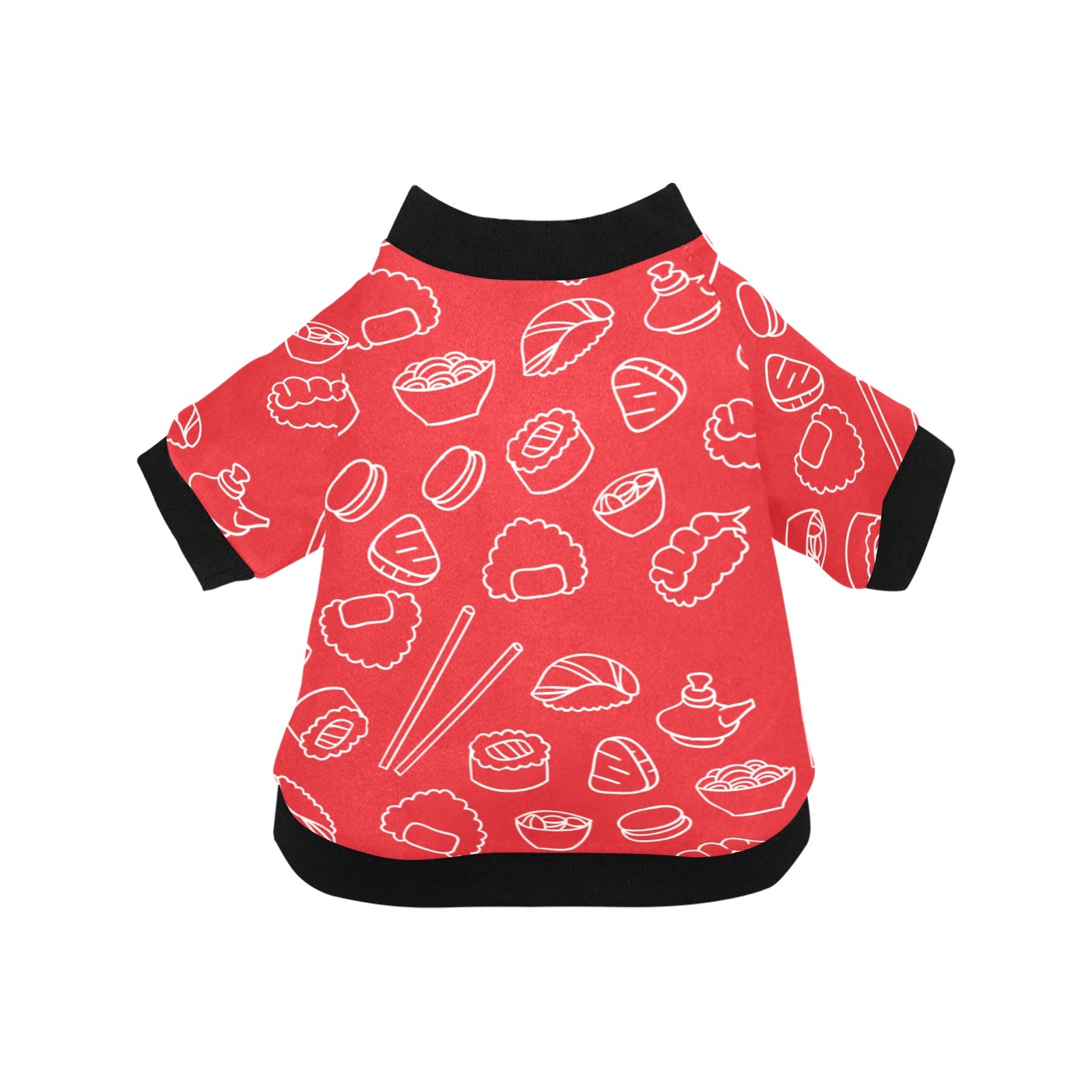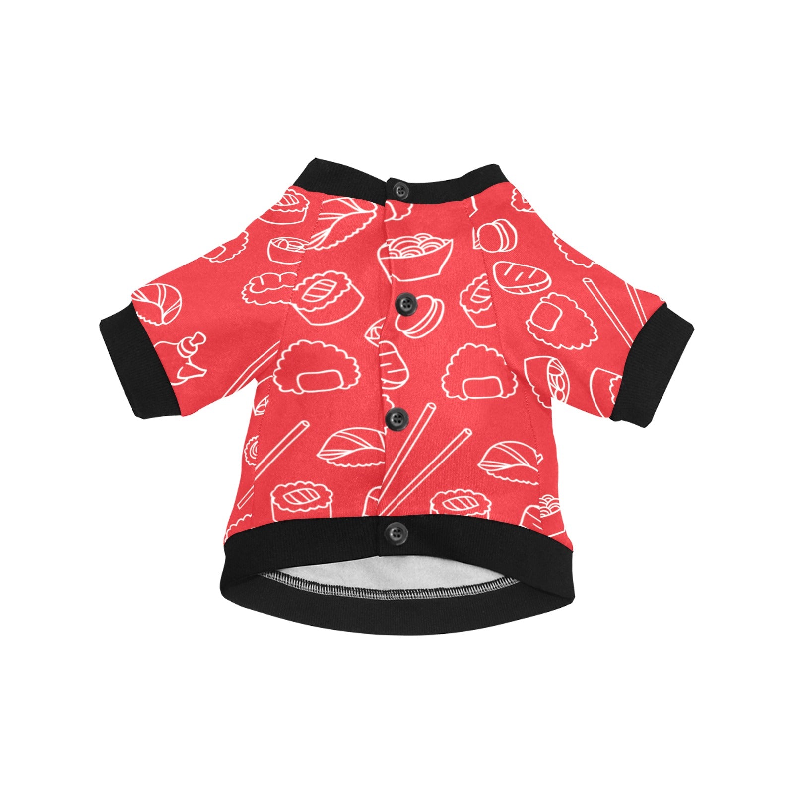 sushi pattern red background All Over Print Pet Dog Round Neck Fuzzy Shirt
