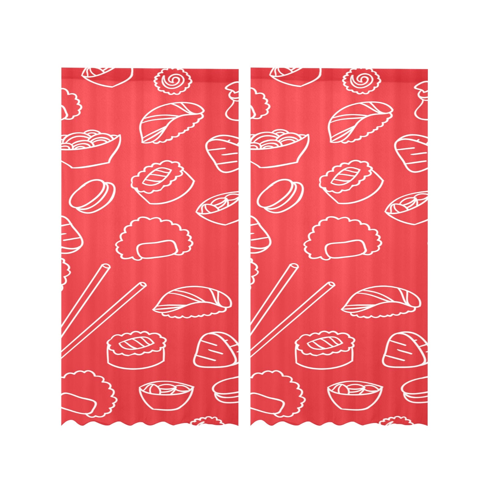 sushi pattern red background Gauze Curtain