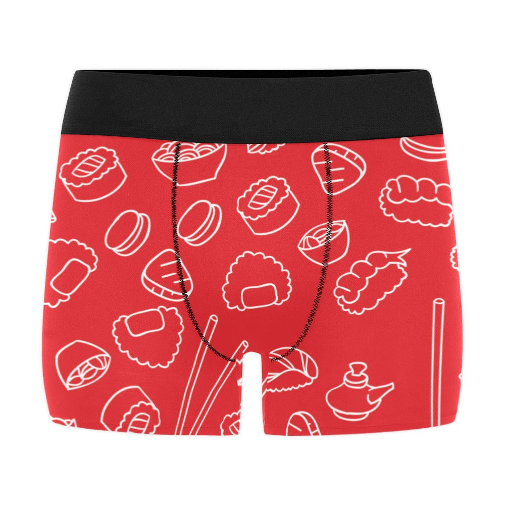 sushi pattern red background Men's All Over Print Boxer Briefs Men's Underwear