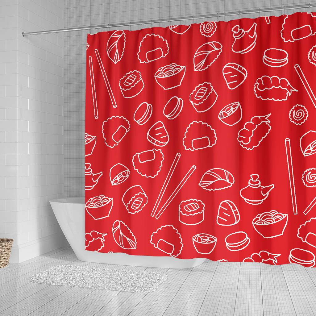 Sushi Pattern Red Background Shower Curtain Fulfilled In US