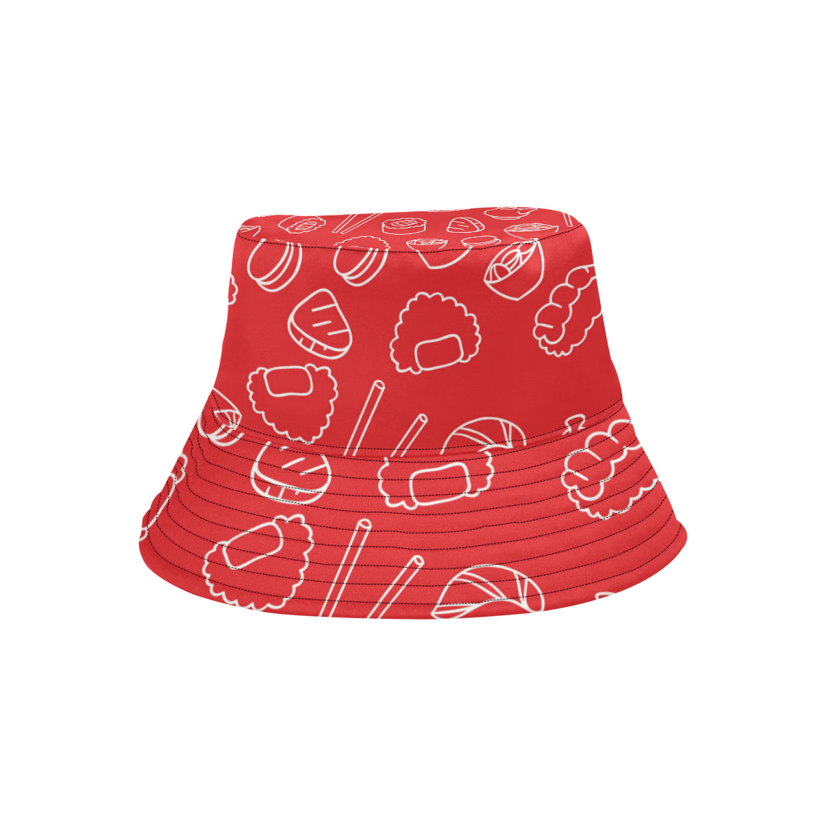 sushi pattern red background Unisex Bucket Hat is a uniqued design and limited item. It made to order, hand printed, and sewn with love in our factory.