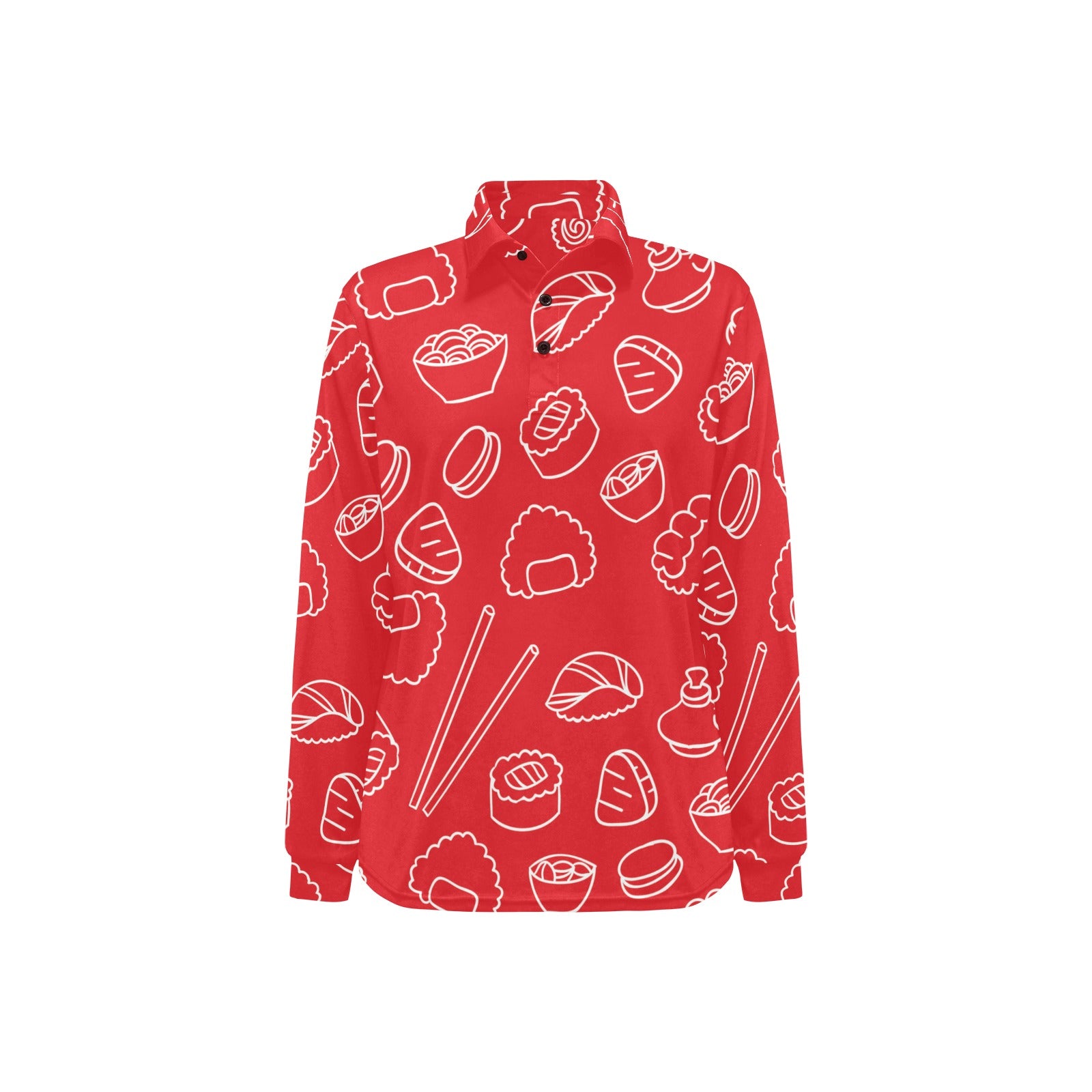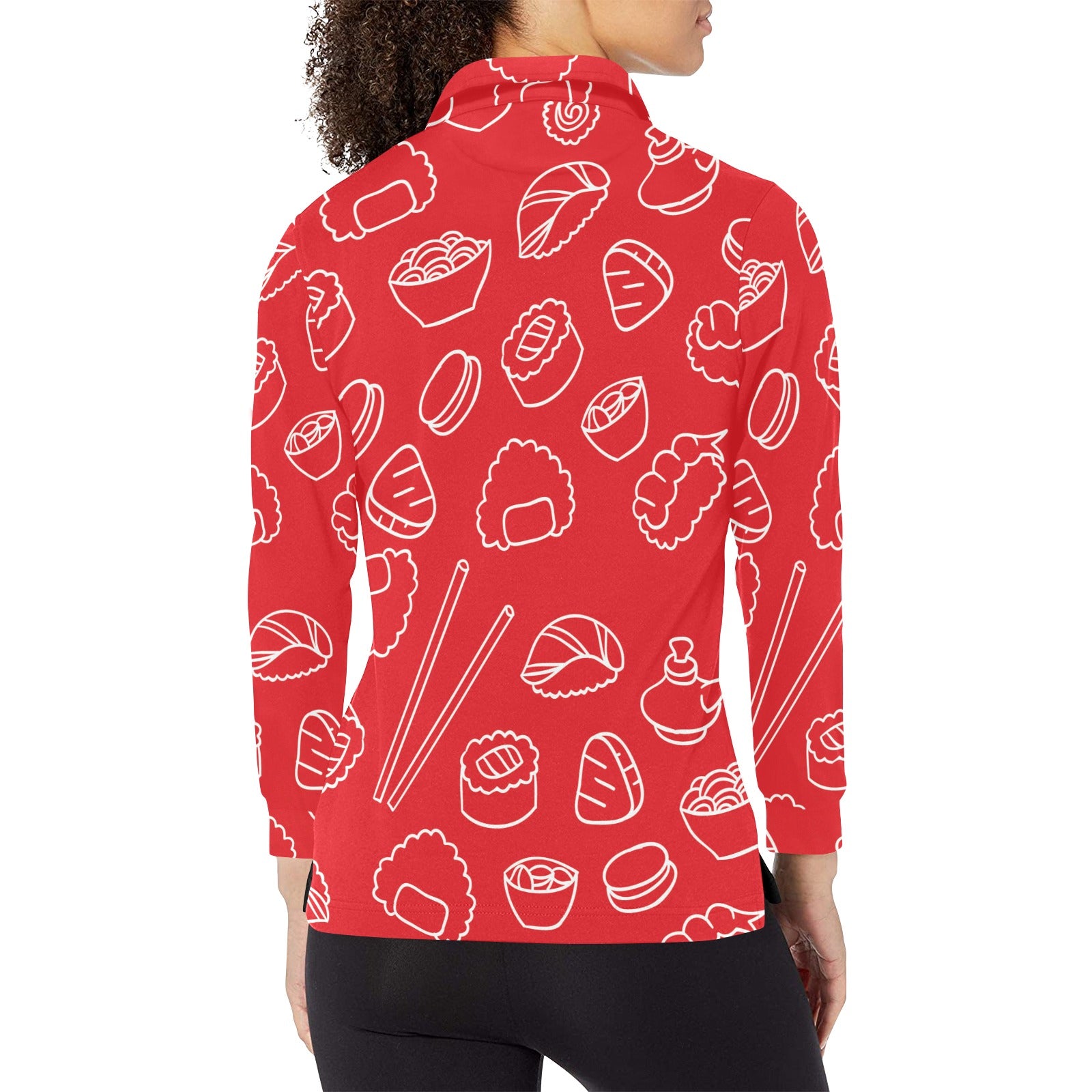 sushi pattern red background Women's Long Sleeve Polo Shirt