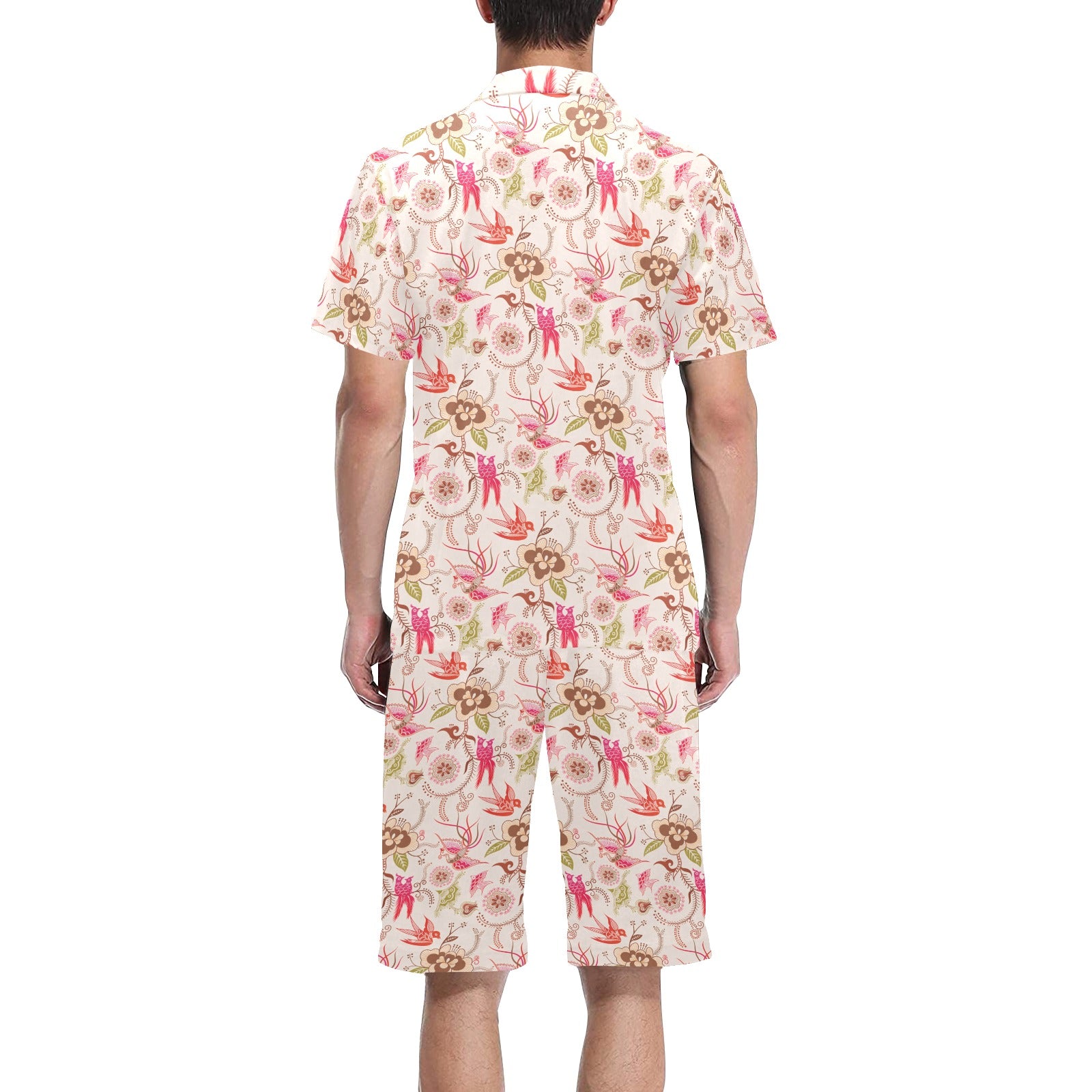 Swallow Pattern Print Design 01 Men's V-Neck Short Pajama Set