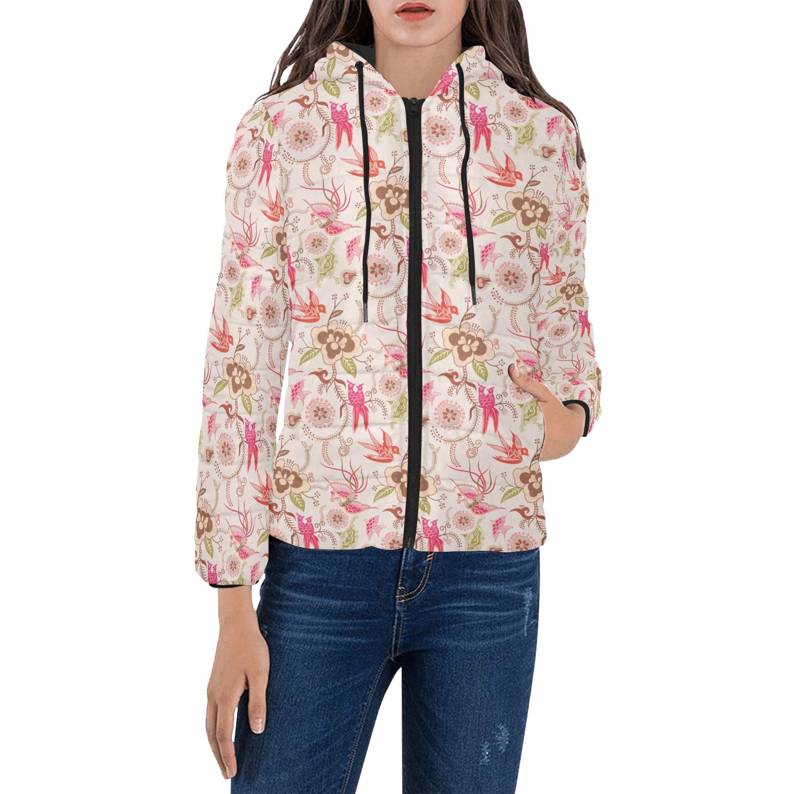 Swallow Pattern Print Design 01 Women's Padded Hooded Jacket