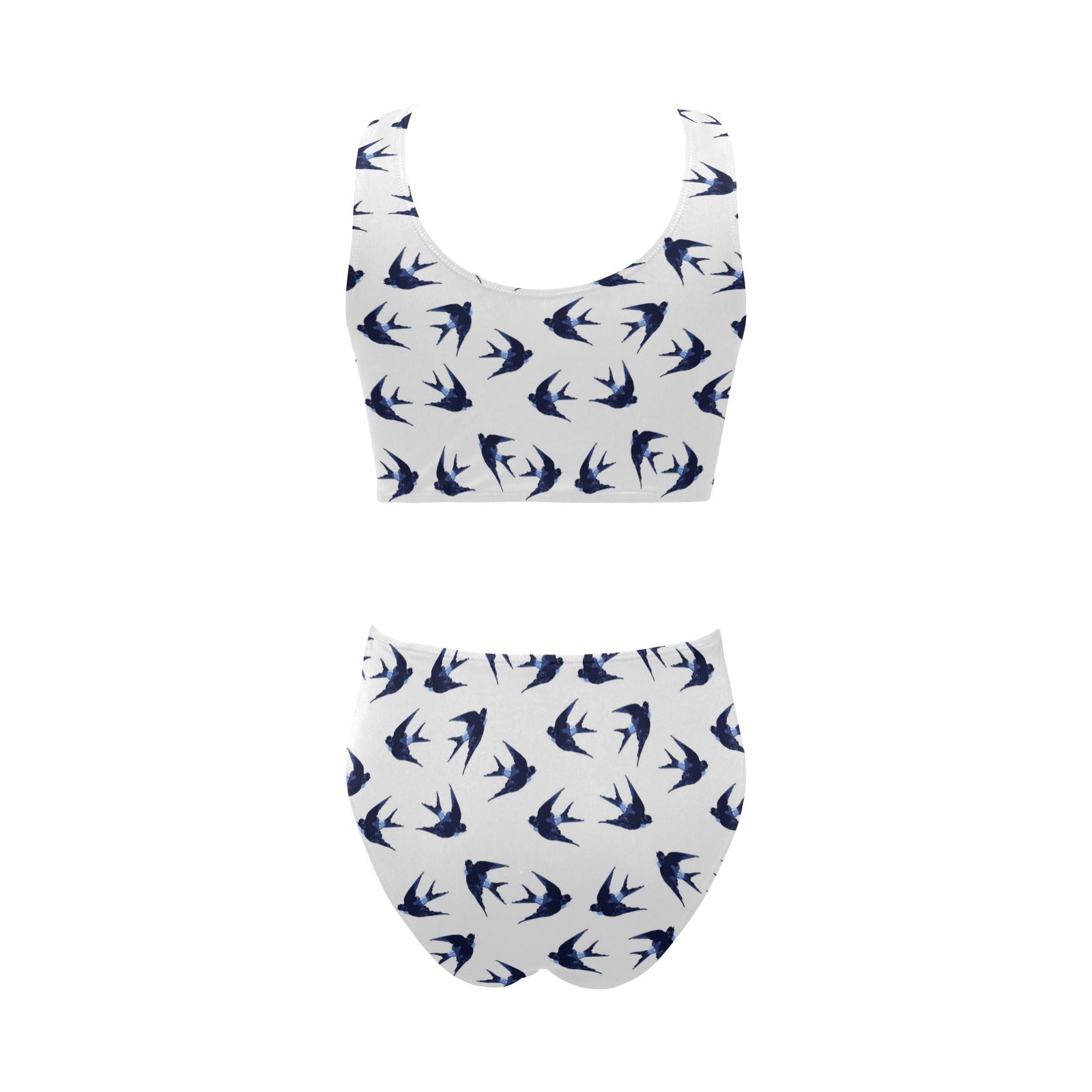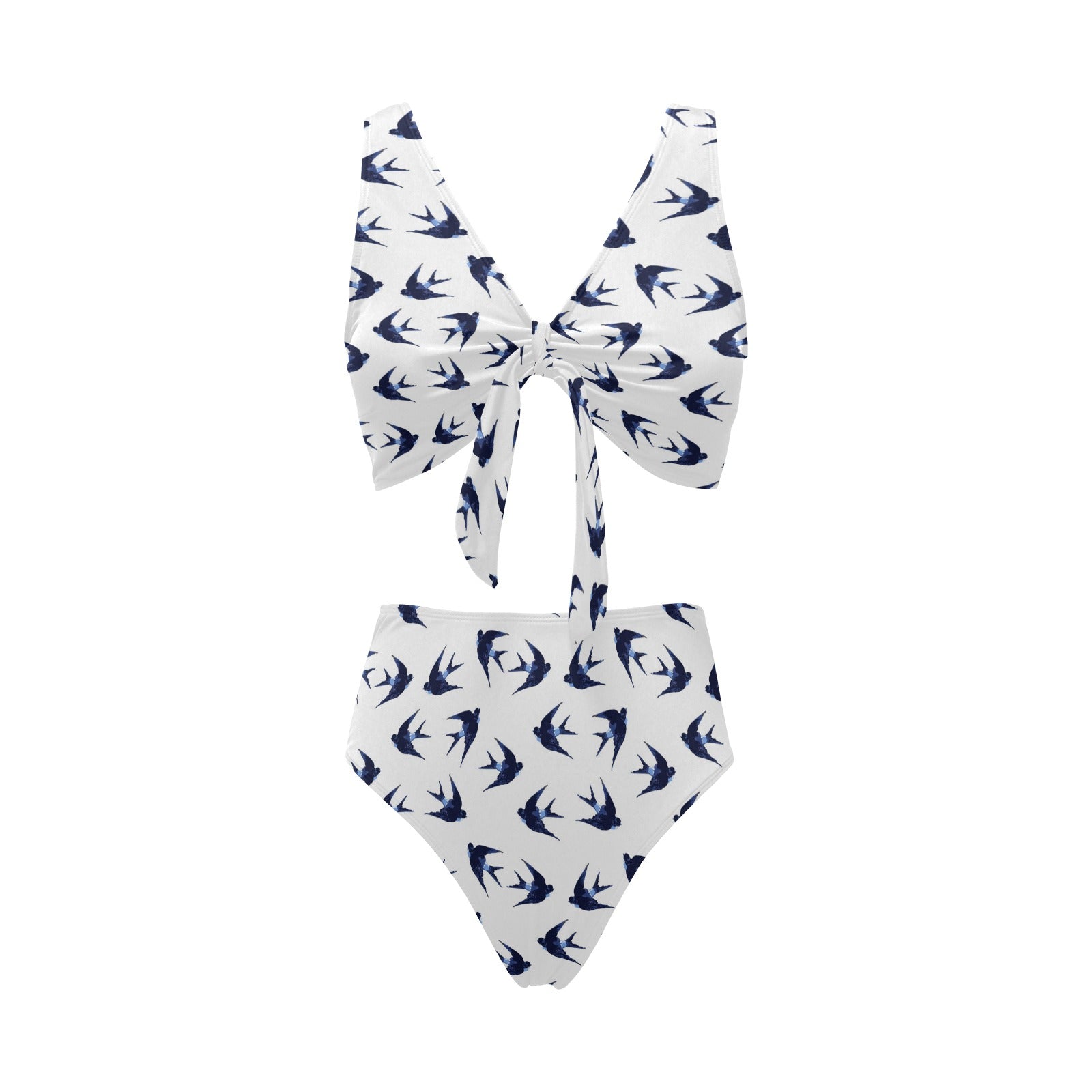 Swallow Pattern Print Design 03 Chest Bowknot High Waisted Bikini Swimsuit