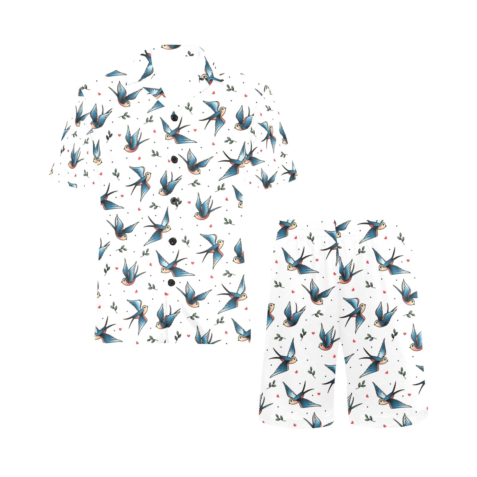 Swallow Pattern Print Design 04 Men's V-Neck Short Pajama Set