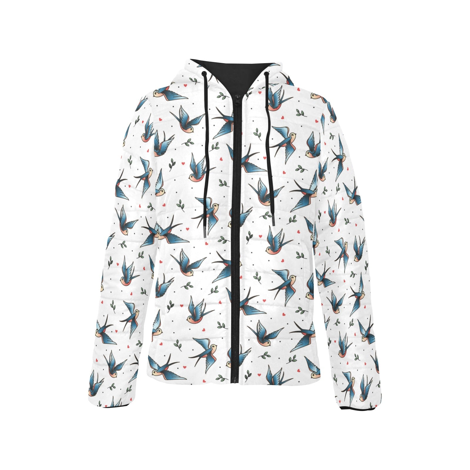 Swallow Pattern Print Design 04 Women's Padded Hooded Jacket