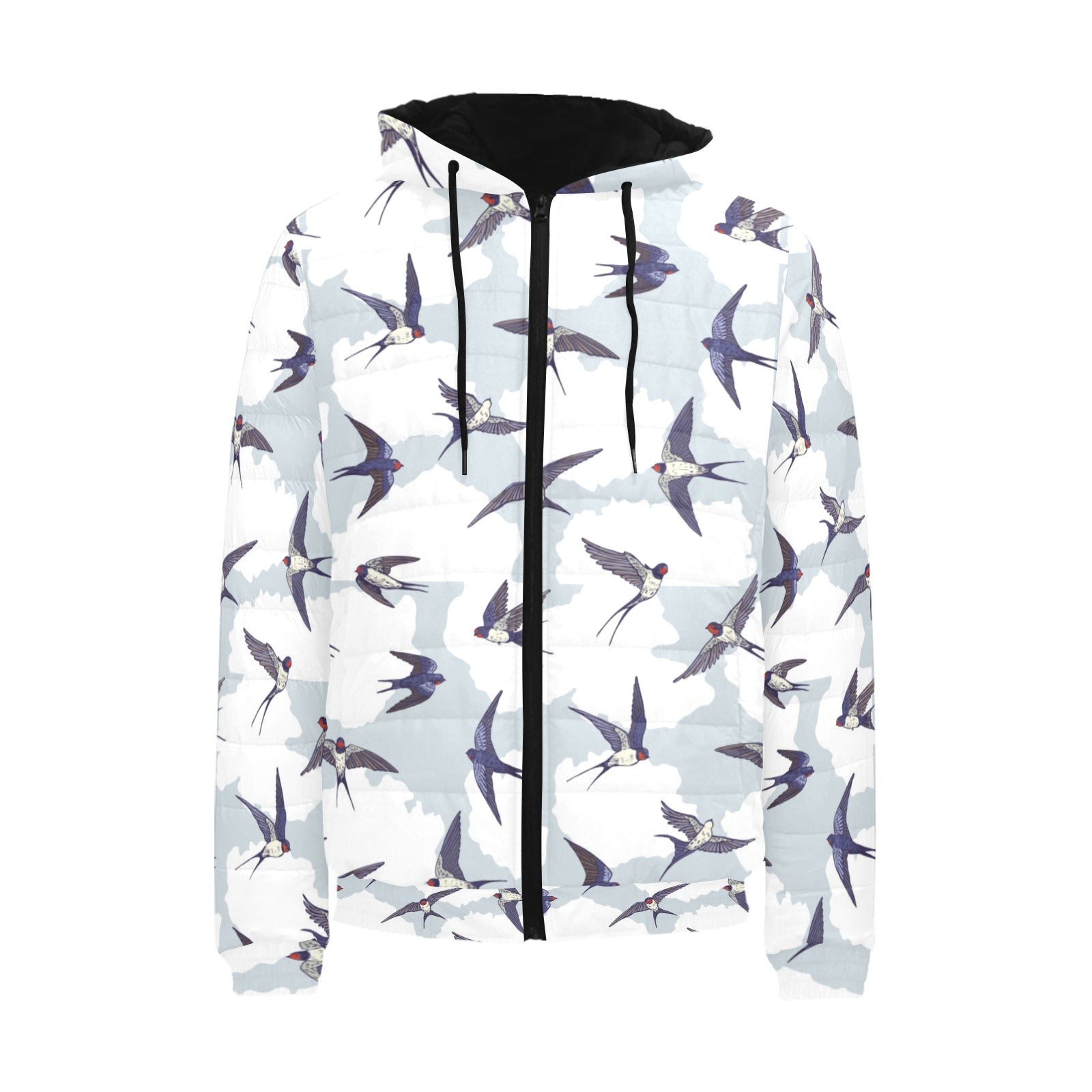 Swallow Pattern Print Design 05 Men's Padded Hooded Jacket
