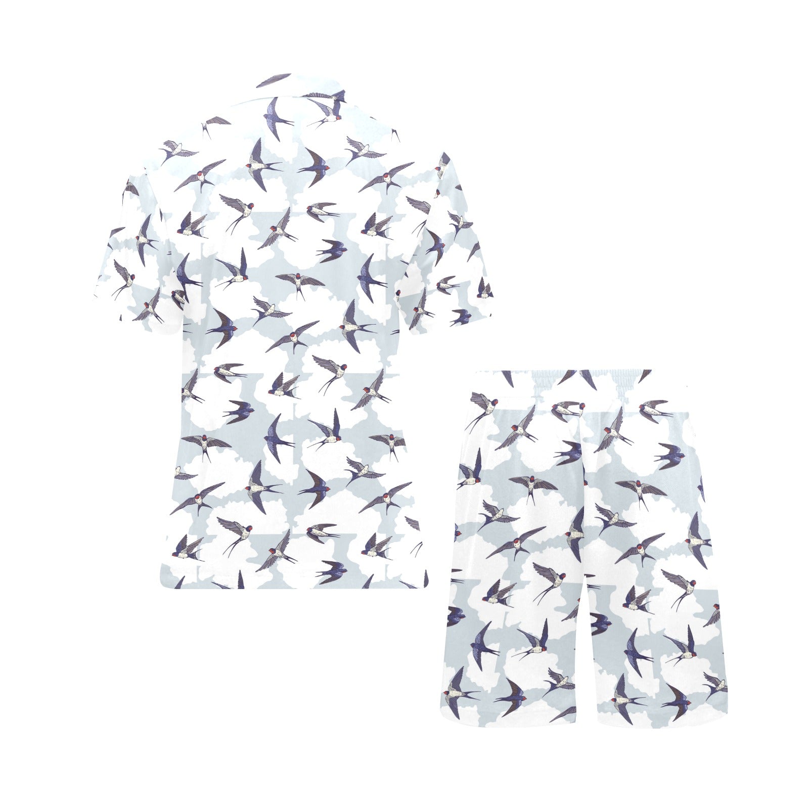 Swallow Pattern Print Design 05 Men's V-Neck Short Pajama Set