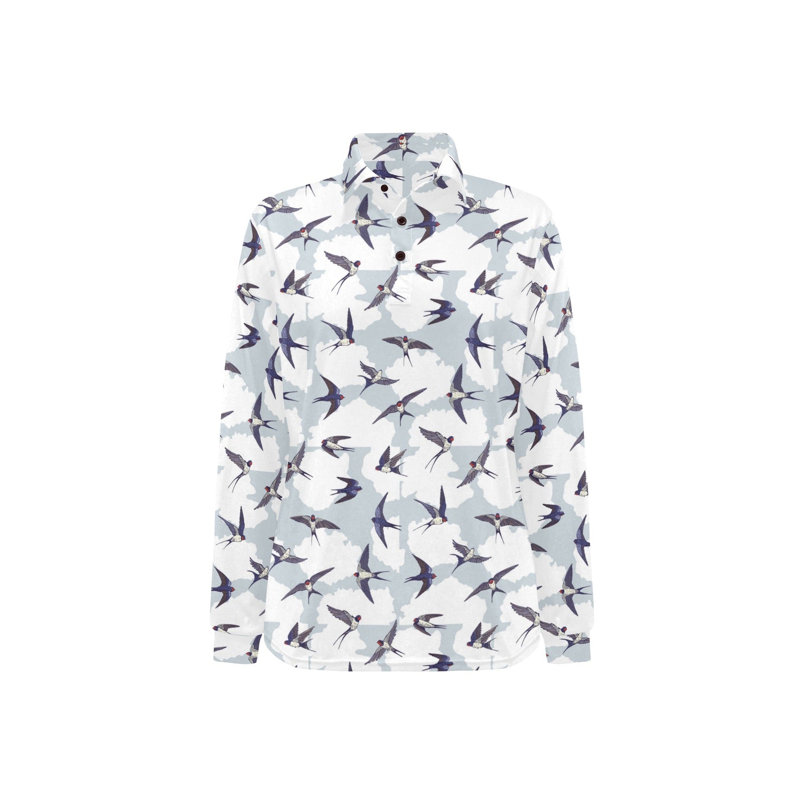 Swallow Pattern Print Design 05 Women's Long Sleeve Polo Shirt