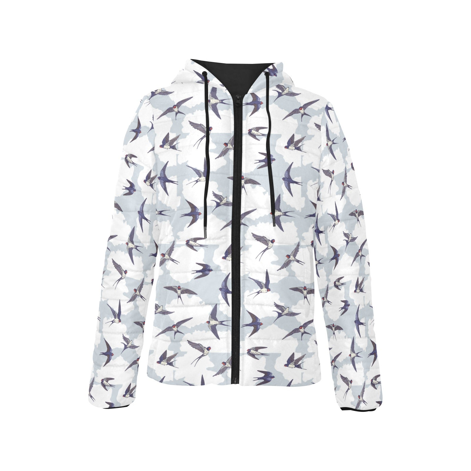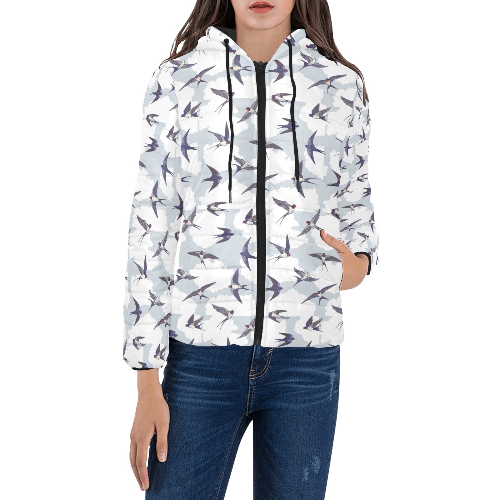 Swallow Pattern Print Design 05 Women's Padded Hooded Jacket