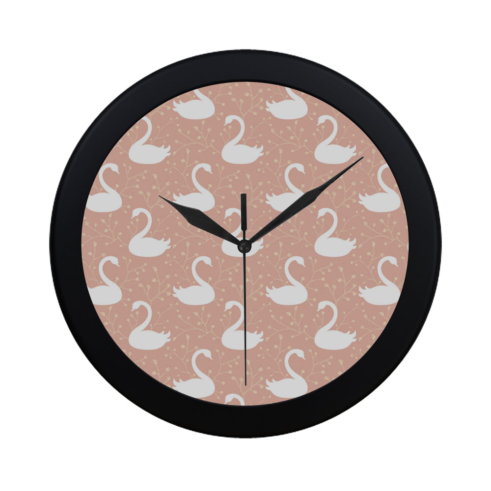 Swan flower light pink background Elegant Black Wall Clock is a uniqued design and limited item. It made to order, hand printed, and sewn with love in our factory.