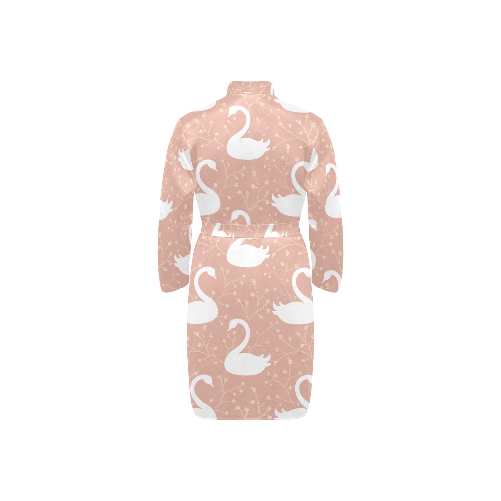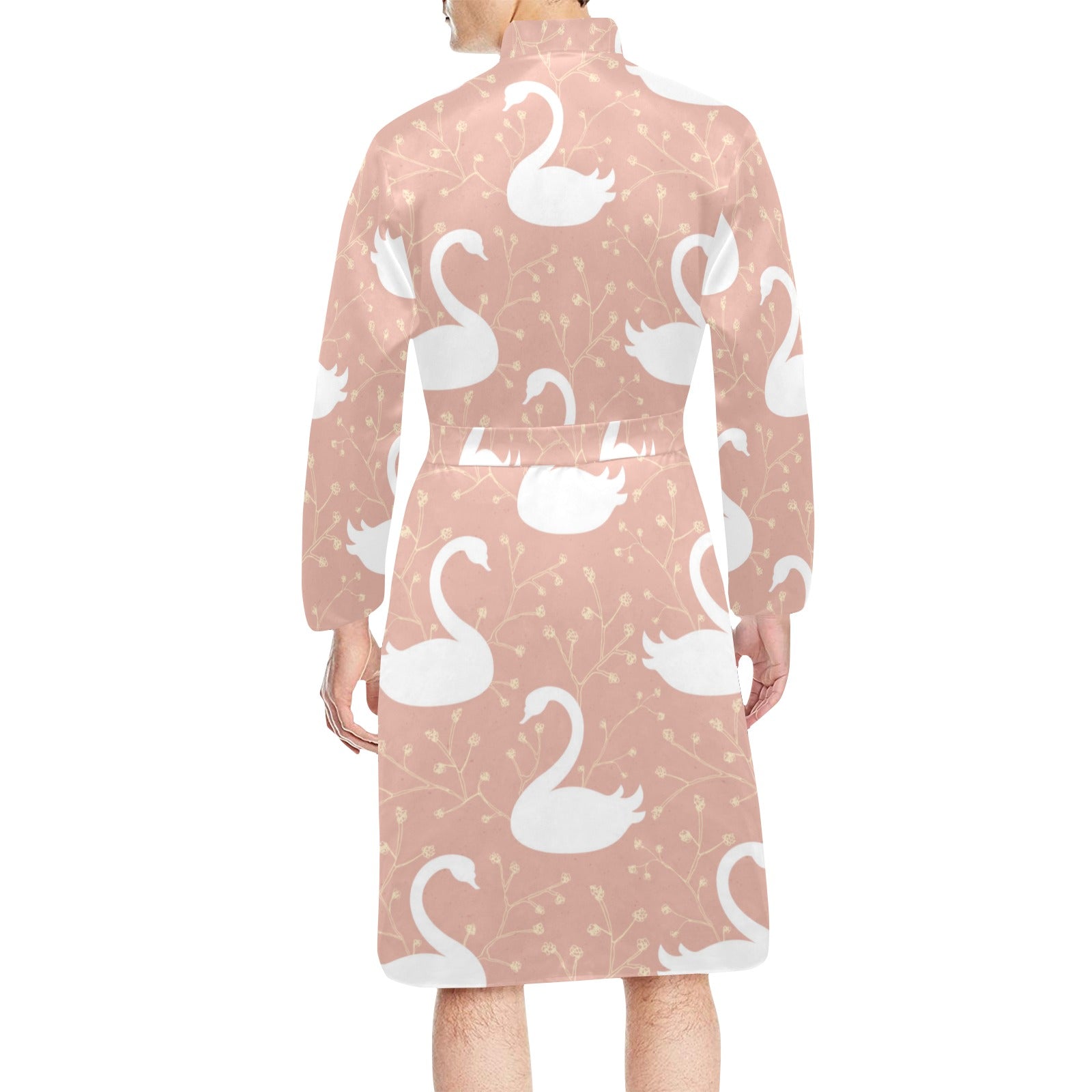 Swan flower light pink background Men's Long Sleeve Belted Night Robe