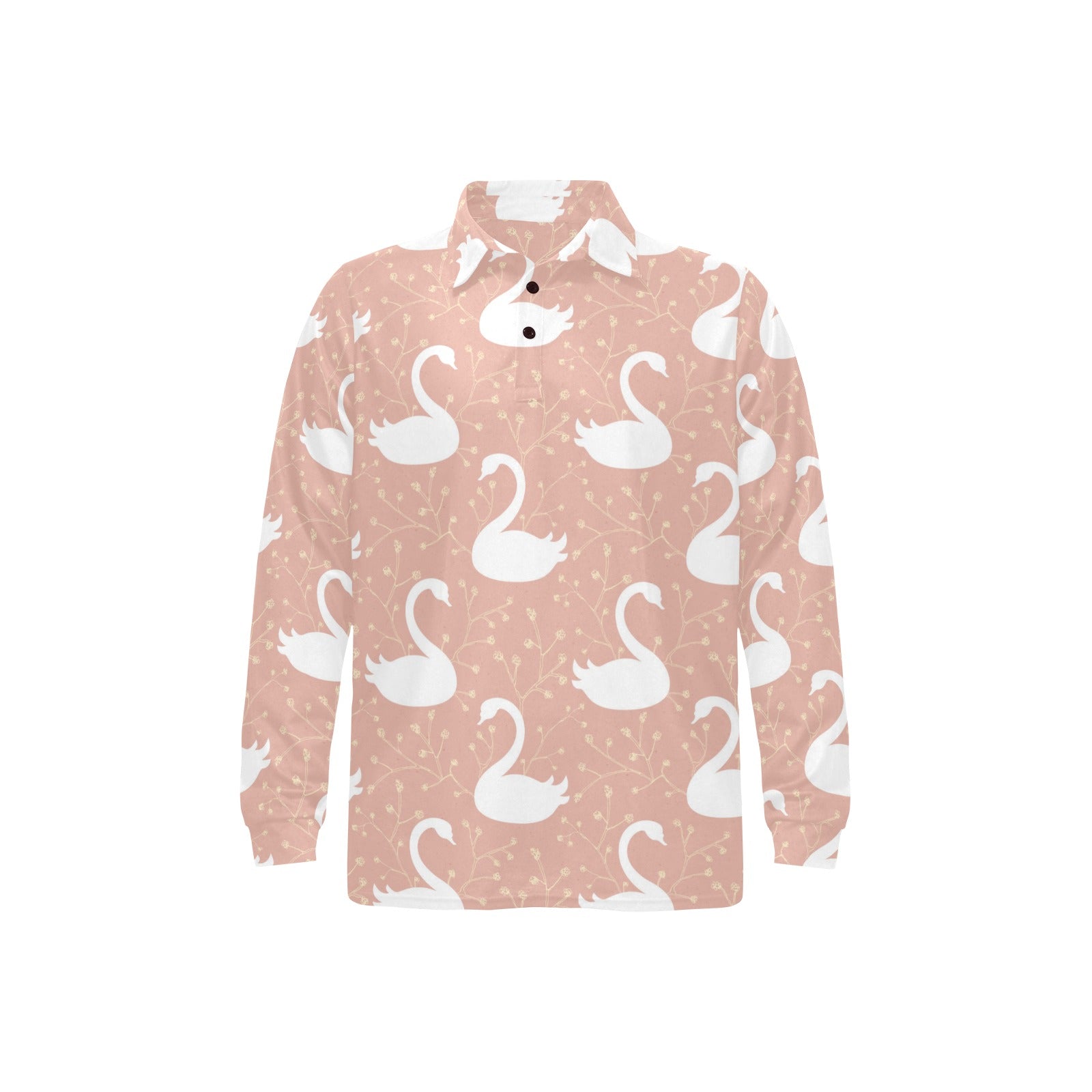 Swan flower light pink background Men's Long Sleeve Polo Shirt