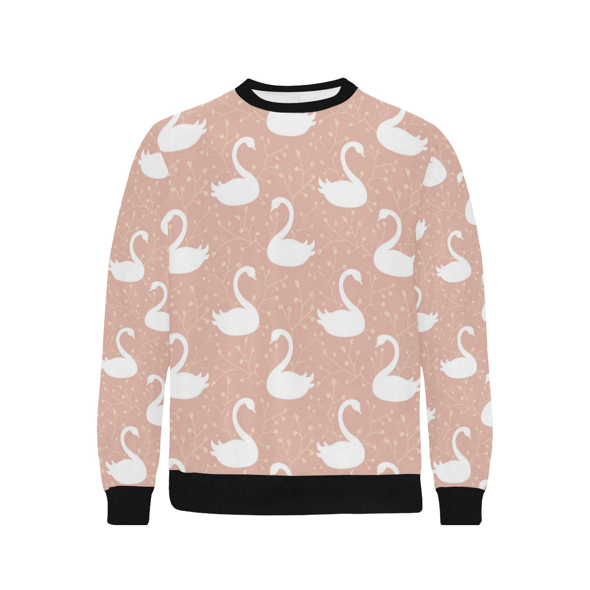 Swan flower light pink background Men's Crew Neck Sweatshirt