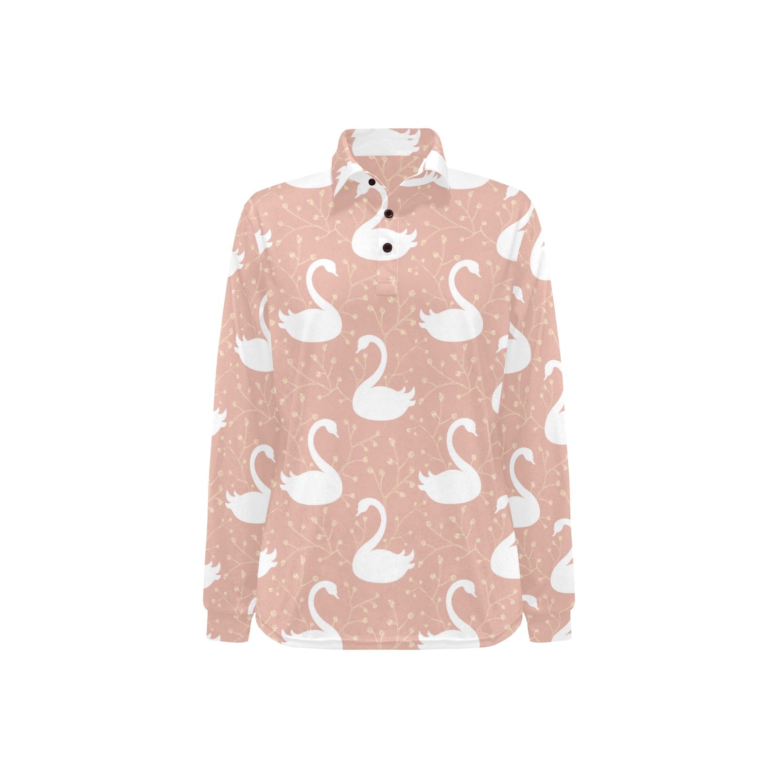 Swan flower light pink background Women's Long Sleeve Polo Shirt