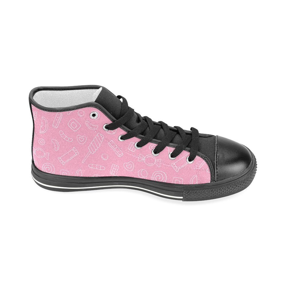 Sweet candy pink background Men's High Top Canvas Shoes Black
